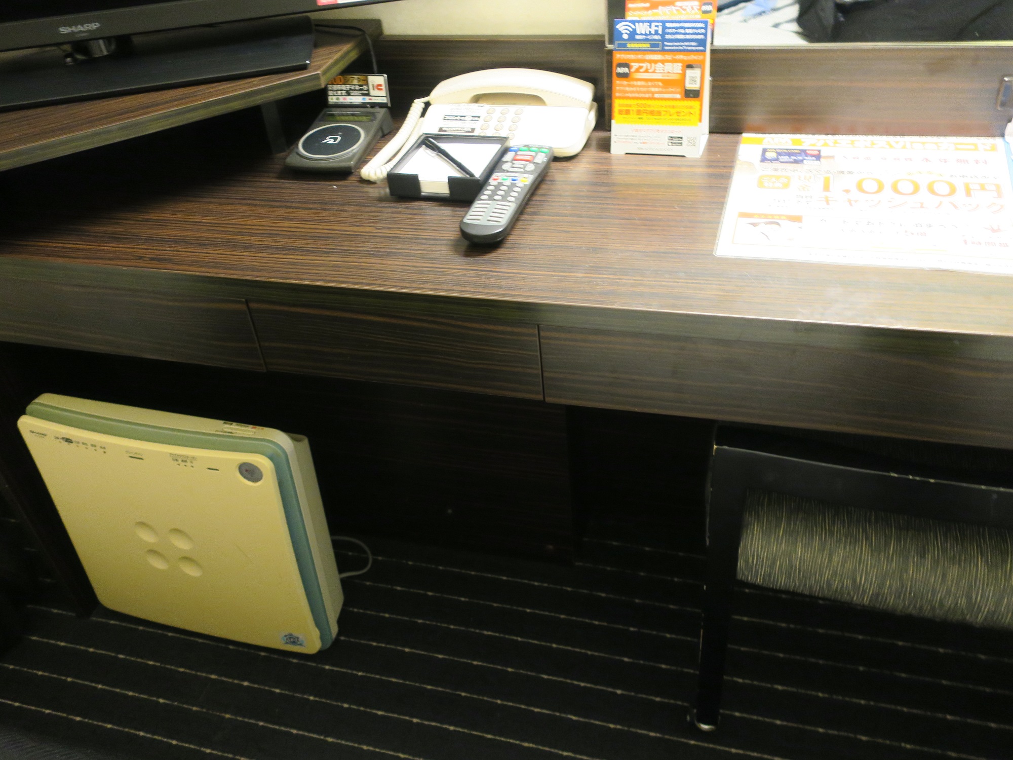 こちらがシングルルームです。アパヴィラホテルって、アパホテルよりも高級な感じなんじゃないかと勝手に想像していたのですが、同じでした。ベッドとテスクの間が狭いのも同じでした。