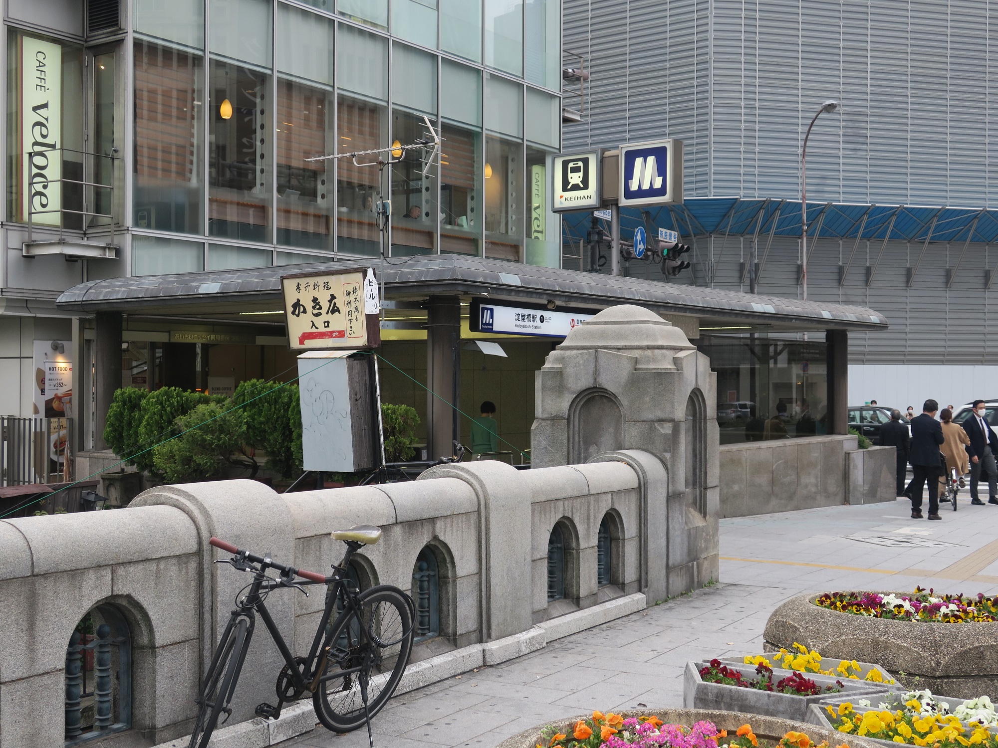 場所は地下鉄御堂筋線と京阪電車の淀屋橋駅から、南東方向に歩いたところにあります。駅から歩いて5分とかからないと思います。コンビニは、ホテル正面にセブンイレブンがあります。