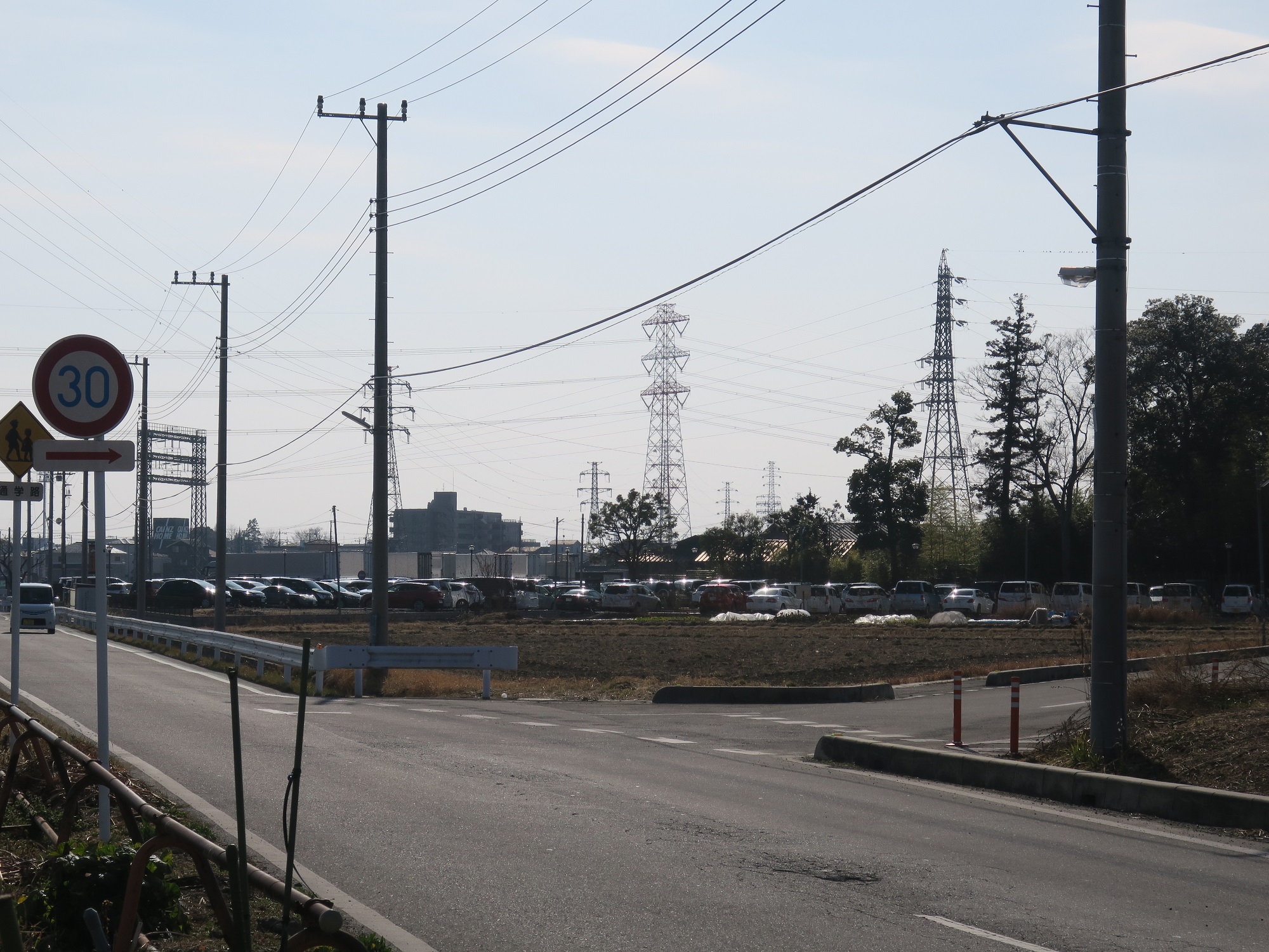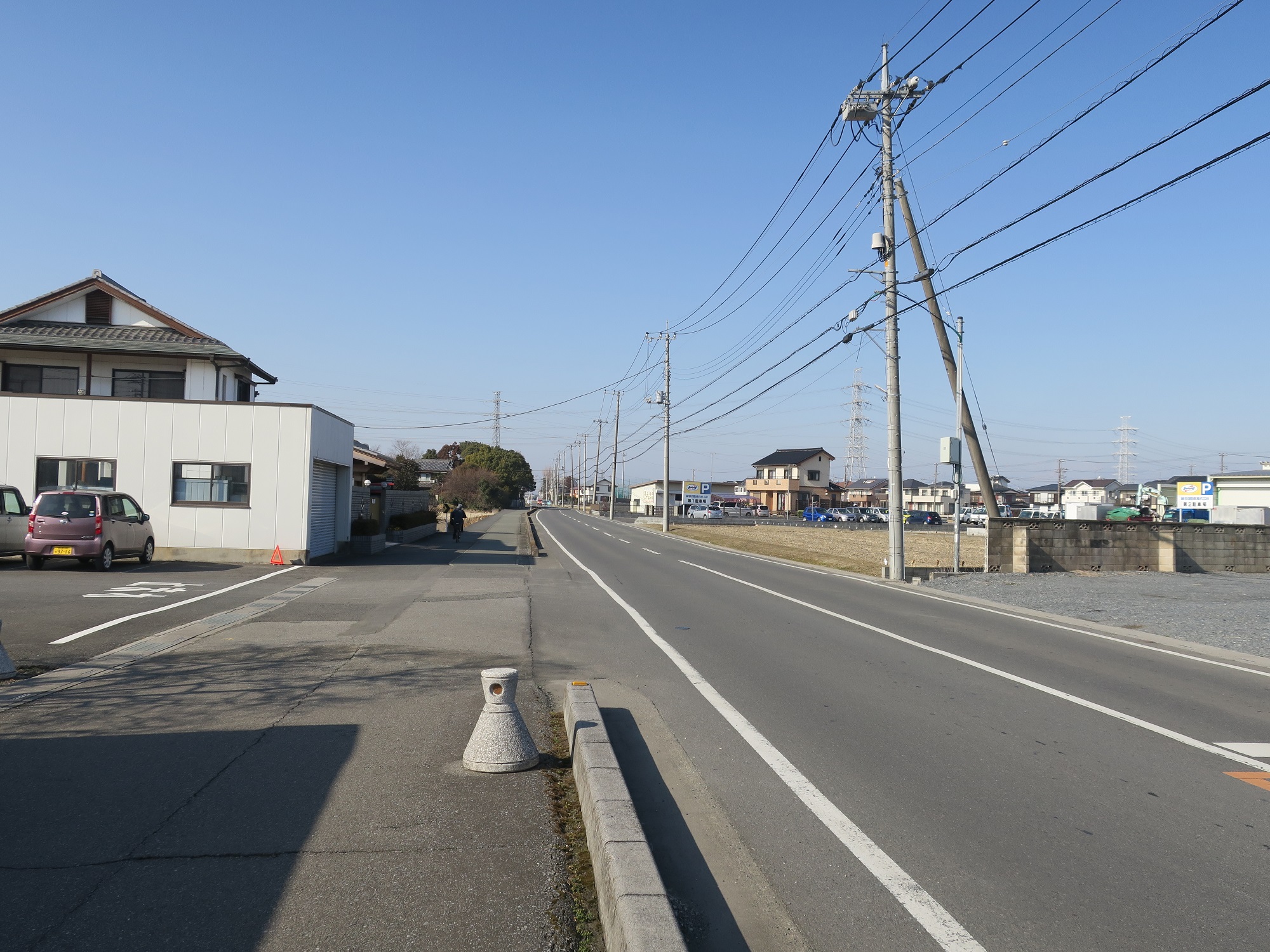 東武観光前バス停の先にある交差点を曲がったところ 杉戸天然温泉 雅楽の湯へは、これをそのまままっすぐ進みます