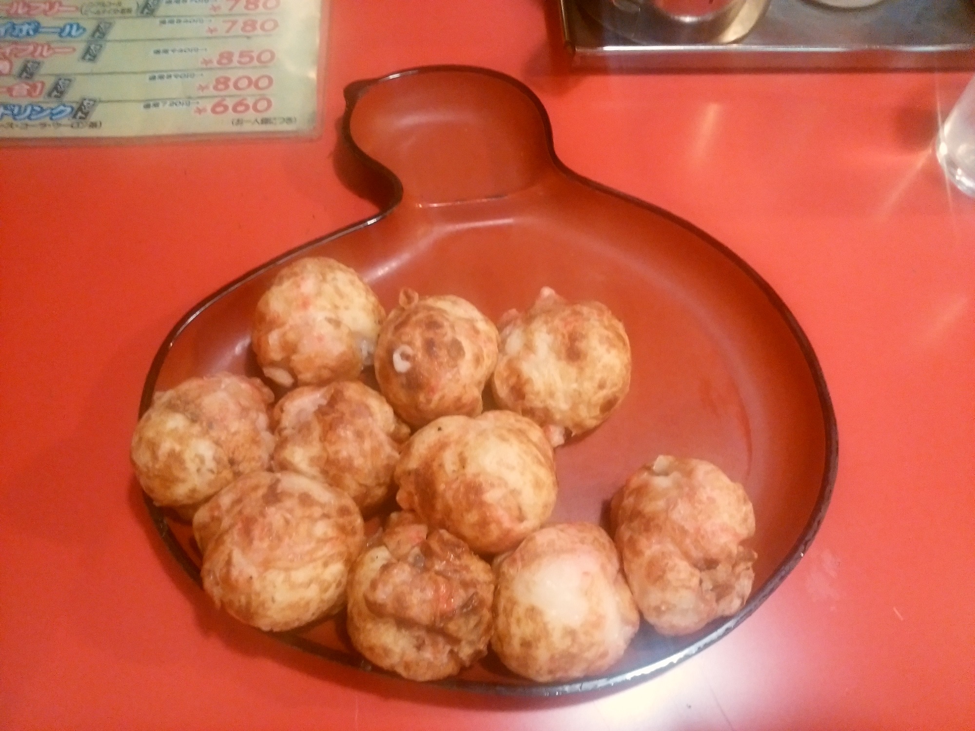 こちらが、たこ焼きです。生地にもちゃんと味が付いていまして、そのまま食べてもちゃんと味があるんですね。で、キューティー吉本は大抵生ビールとセットで、2人前はいってしまいます。うーん、次大阪行ったときにも、食べられるかしら。