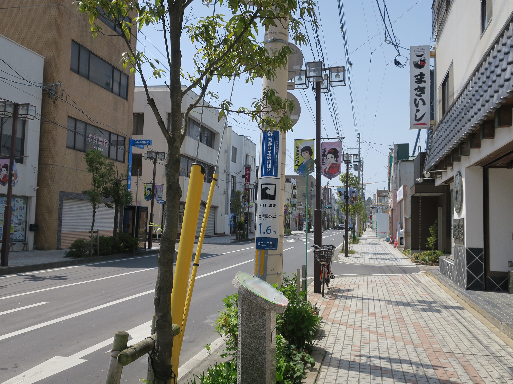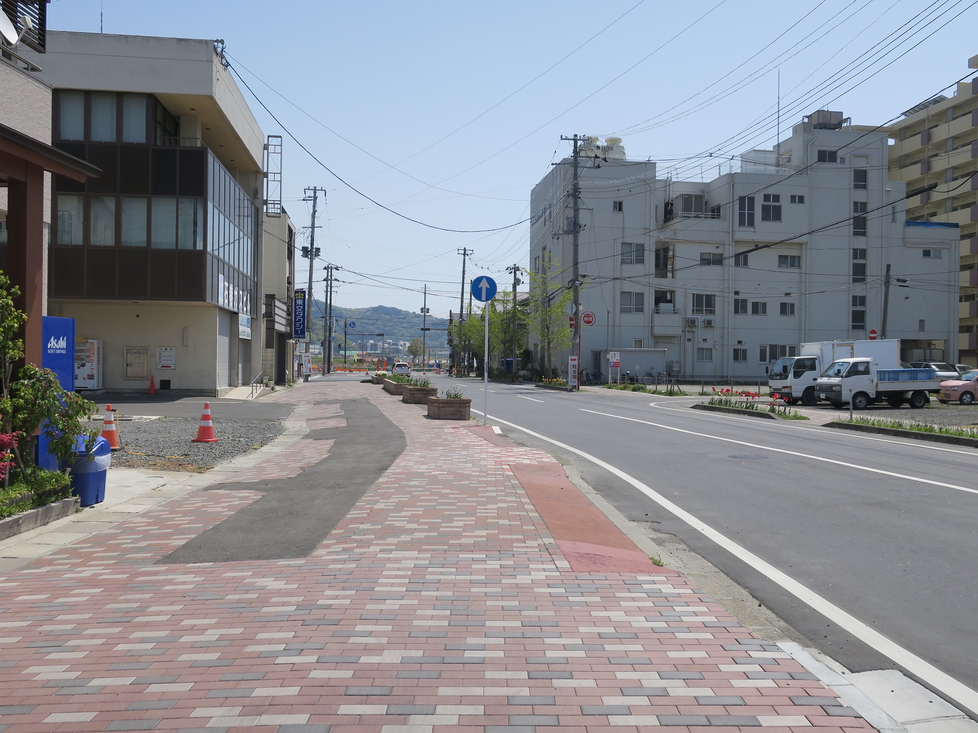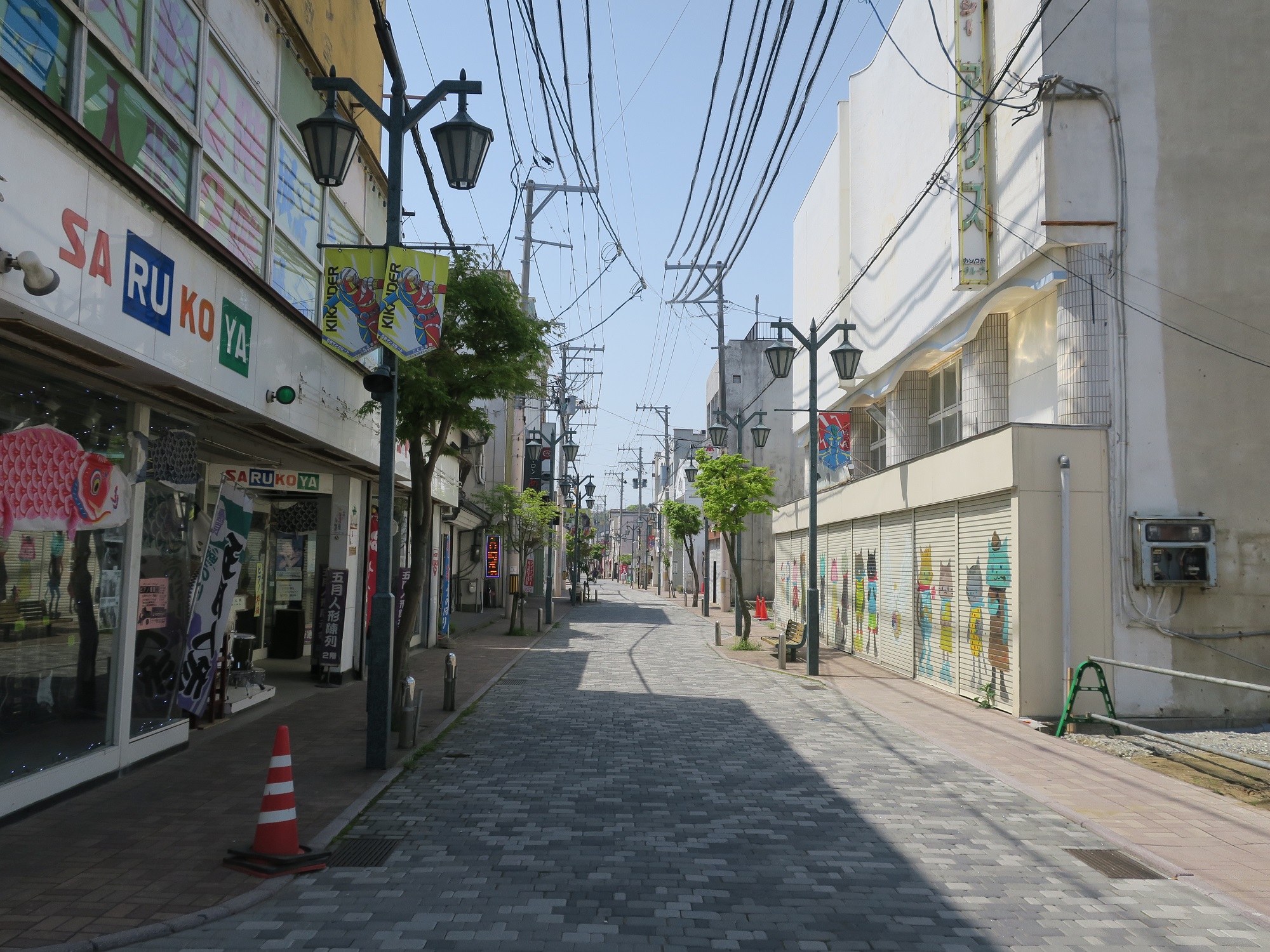なんと立派な道ですね。ここも津波が浸水したため、復旧は大変だったそうです。しかし、せっかく復旧したのに開いているお店の方が少なく、商店街ではなくシャッター街と化しているのが残念です。