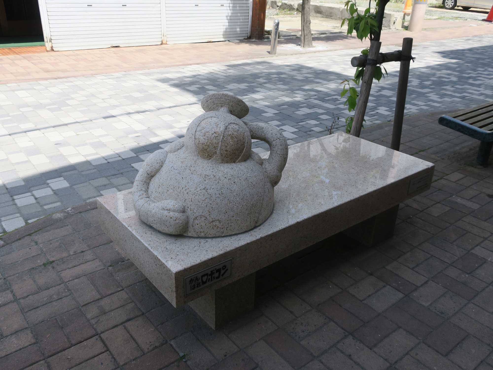 しかし、こんなところに味があるベンチがありました。よーく見ると、ロボコンですね。