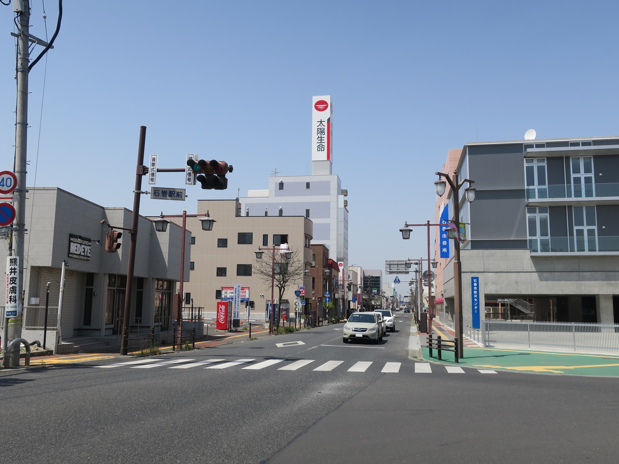 「いしのまき元気いちば ここを左折」の立て看板が気になりまして、ここを左折します。