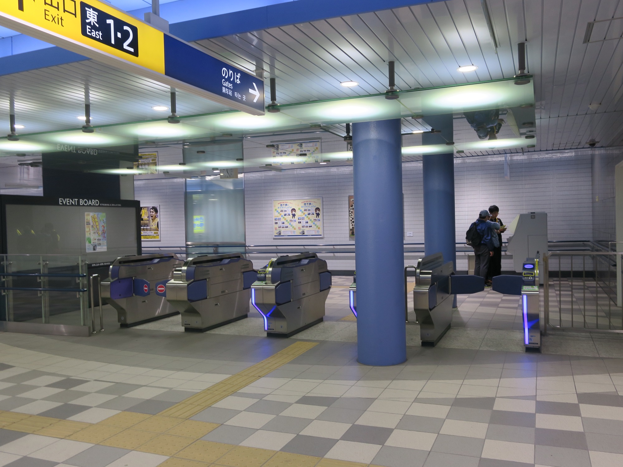 改札口です。ICSCAやSuica、PASMOなどの交通系ICカードが使える、自動改札機が並びます。