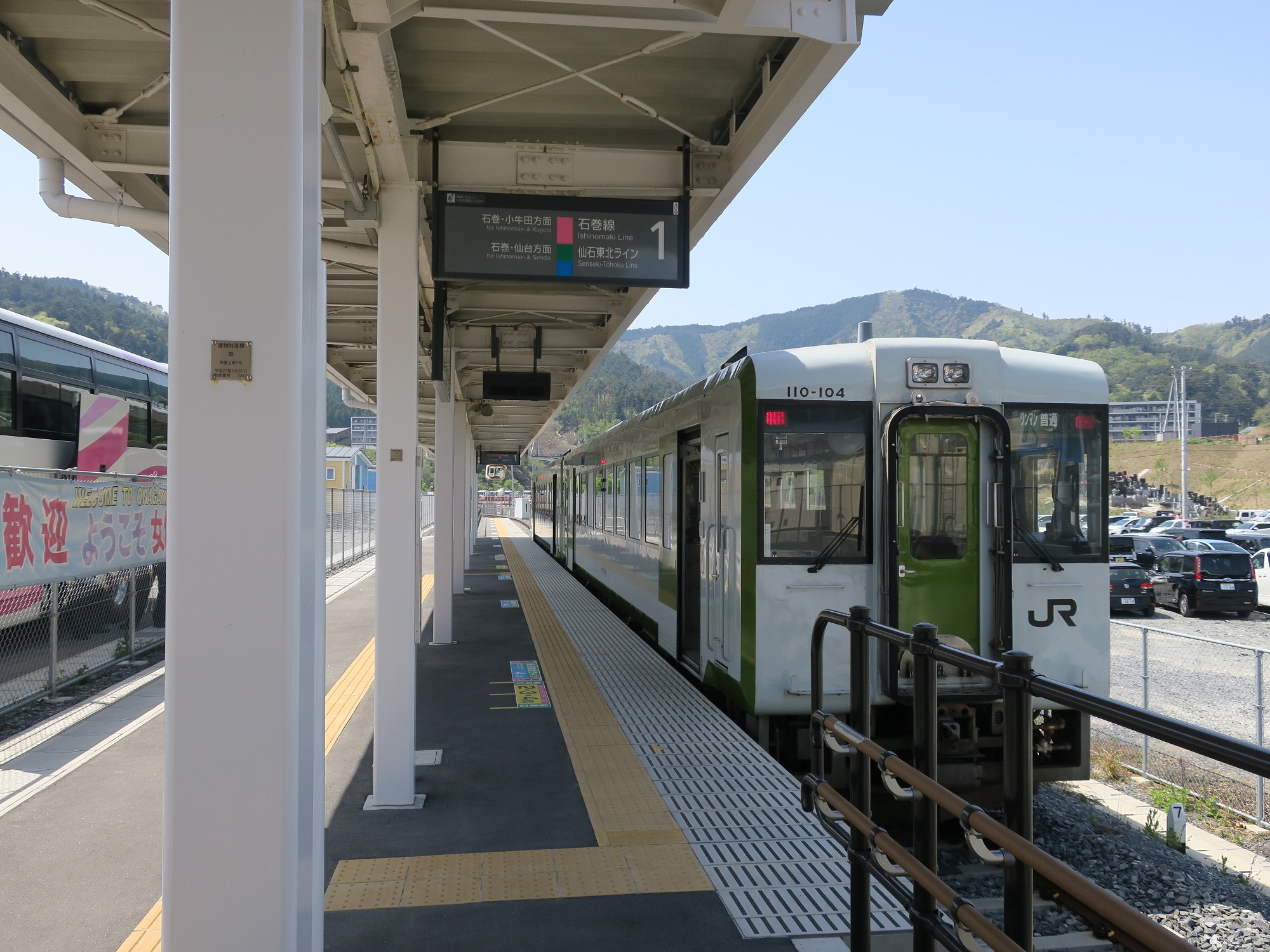 JR石巻線の終点、女川(おながわ)駅です。この辺りは東日本大震災の津波で、ごっそりやられたところでもあります。