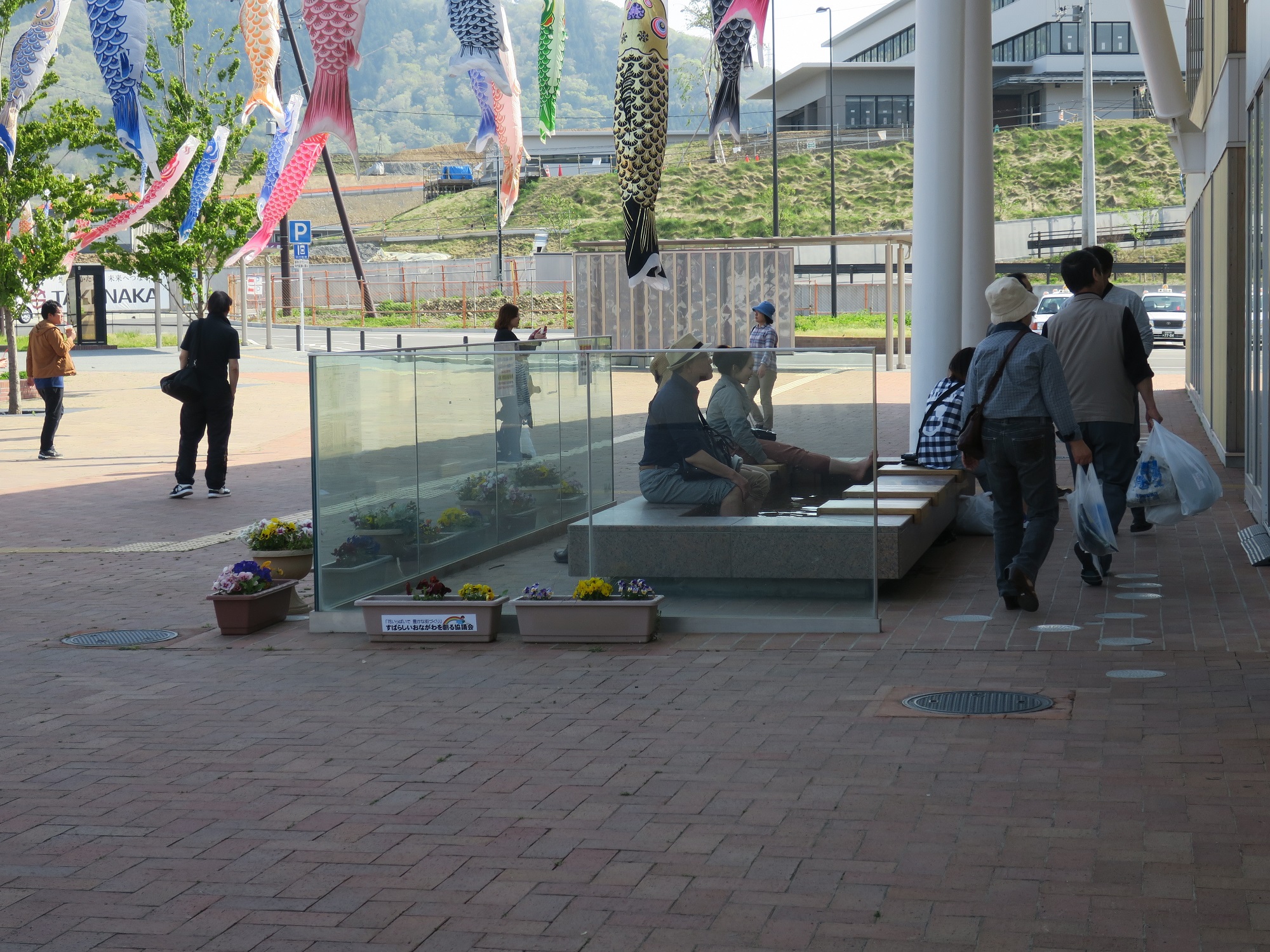 更に、駅前には誰でも無料で入れる、足湯ができていました。