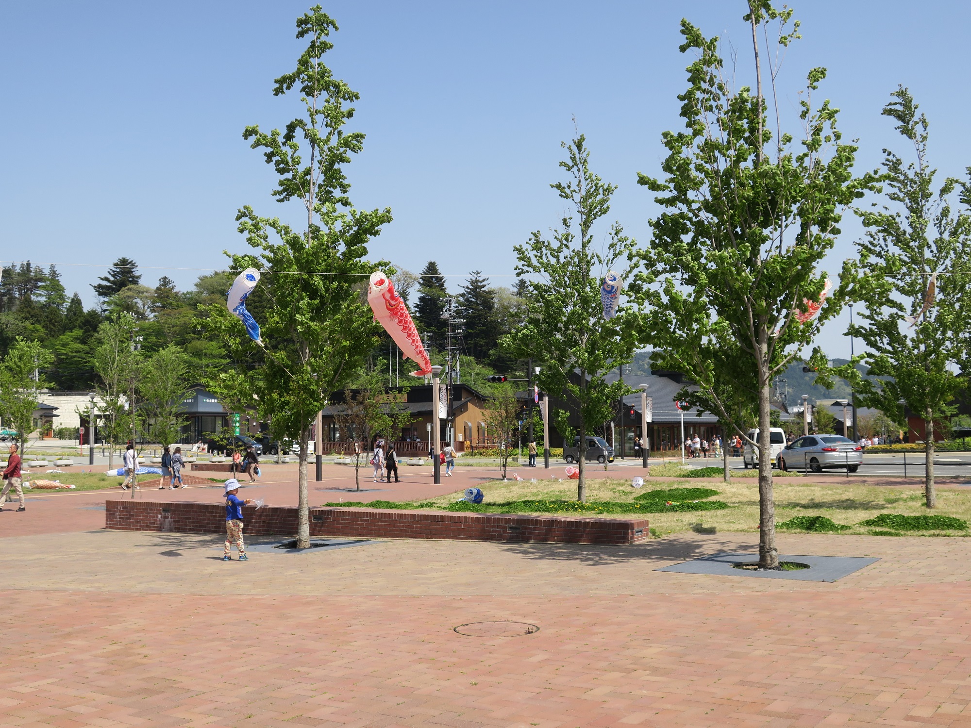 更にこちらが駅前広場。駅自体が、かさ上げされた場所に建てたみたいです。