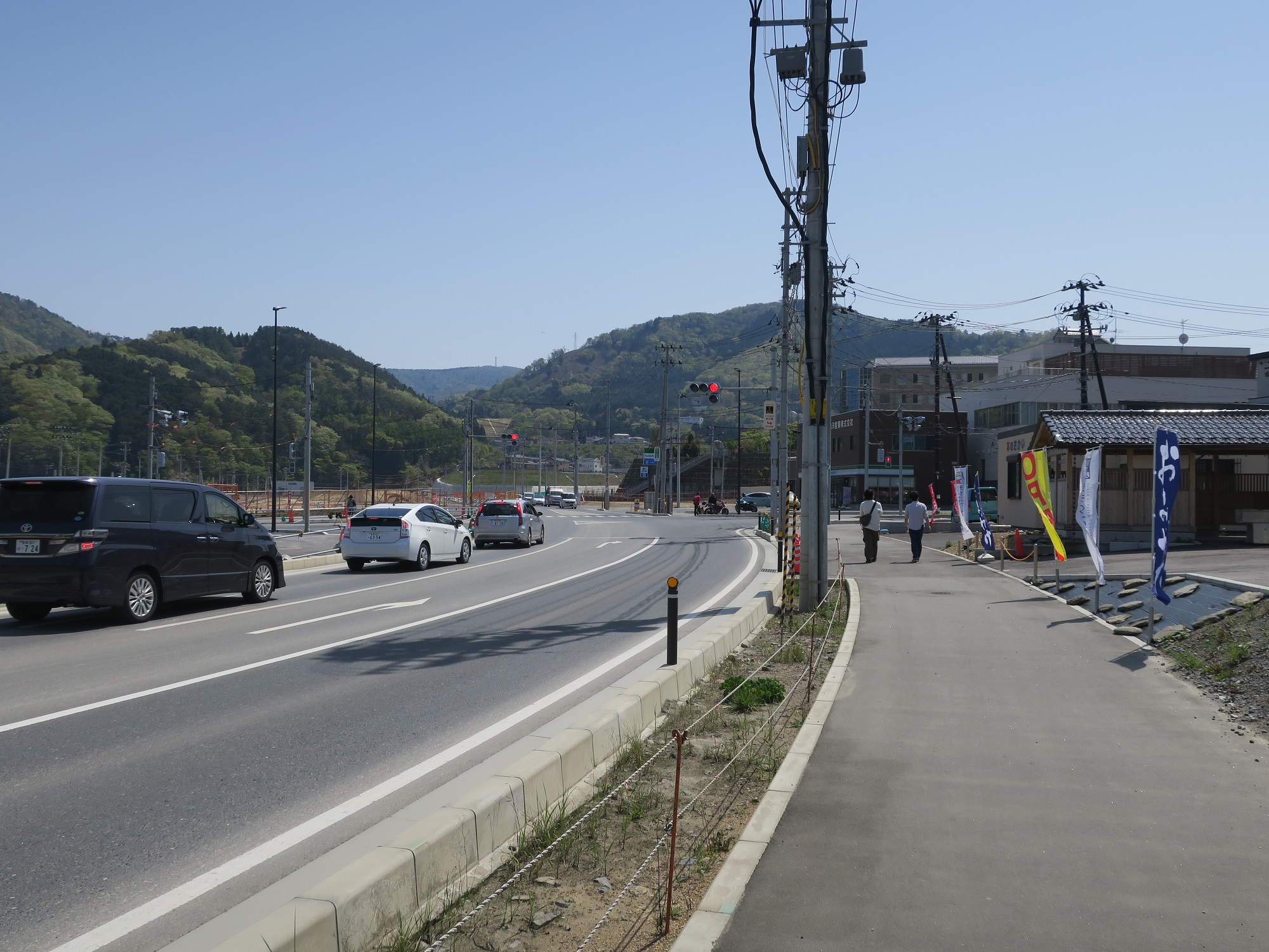 この交差点から先に行けば海なのですが、工事中でして。ここから先に進むことができませんでした。