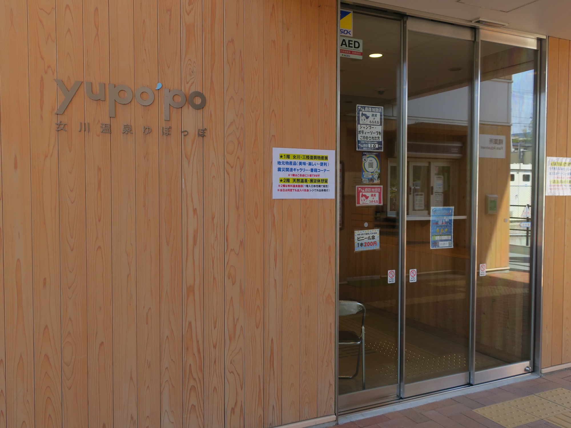 かつて女川駅には、駅に隣接して温浴施設がありました。しかし、駅舎諸共津波で流されまして。再建された駅舎にも、温浴施設ができました。女川温泉ゆぽっぽです。