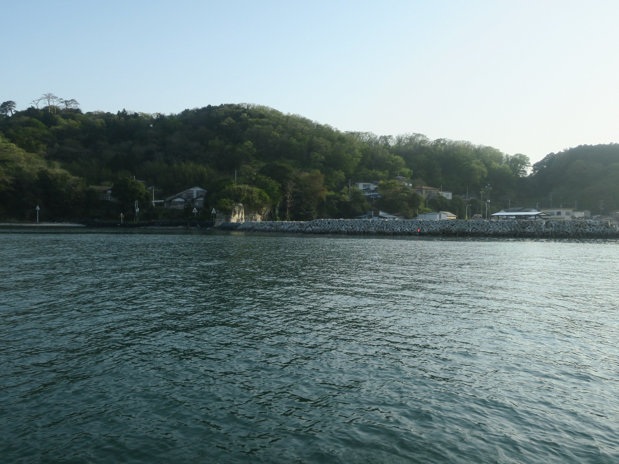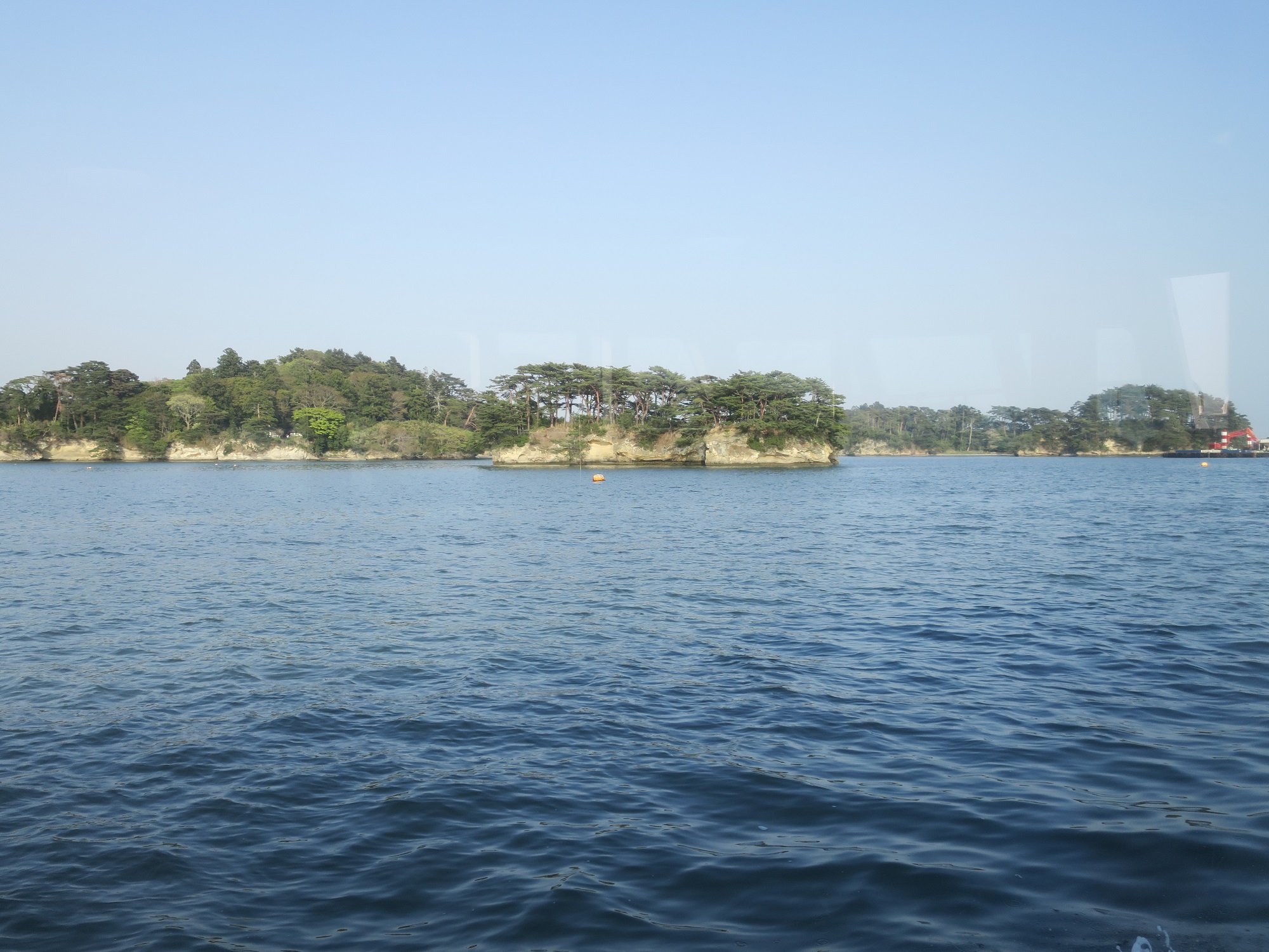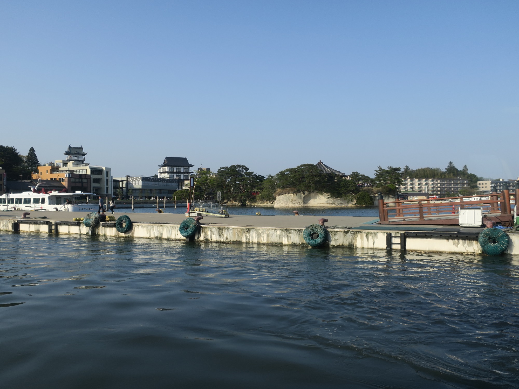 これが、船から見た松島海岸と、観光船乗り場ですね。