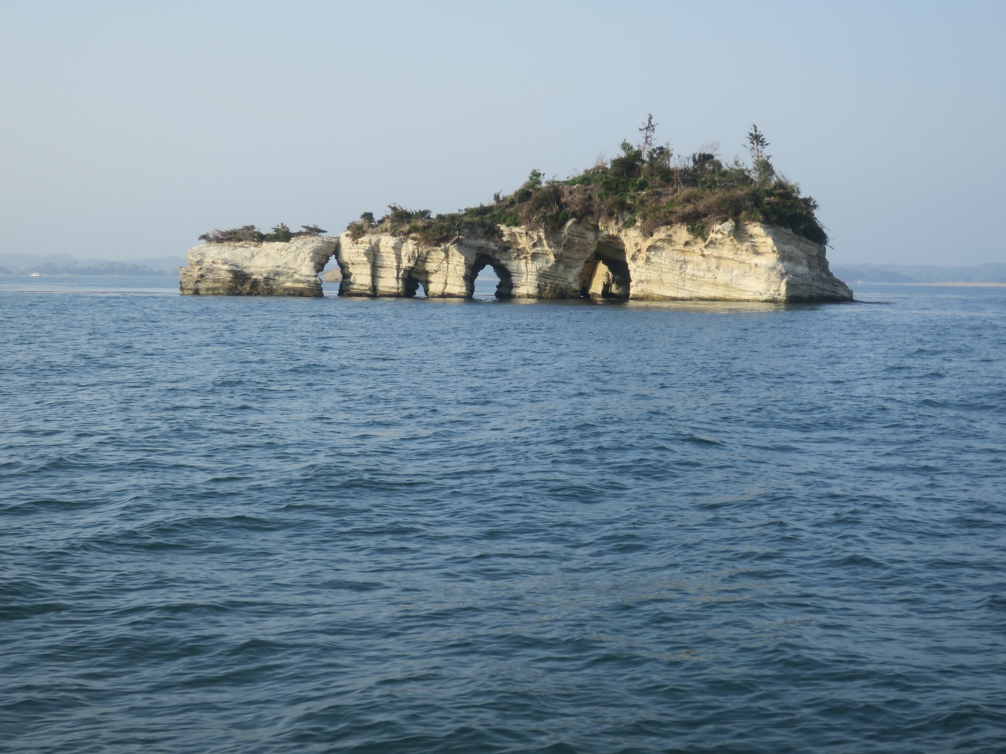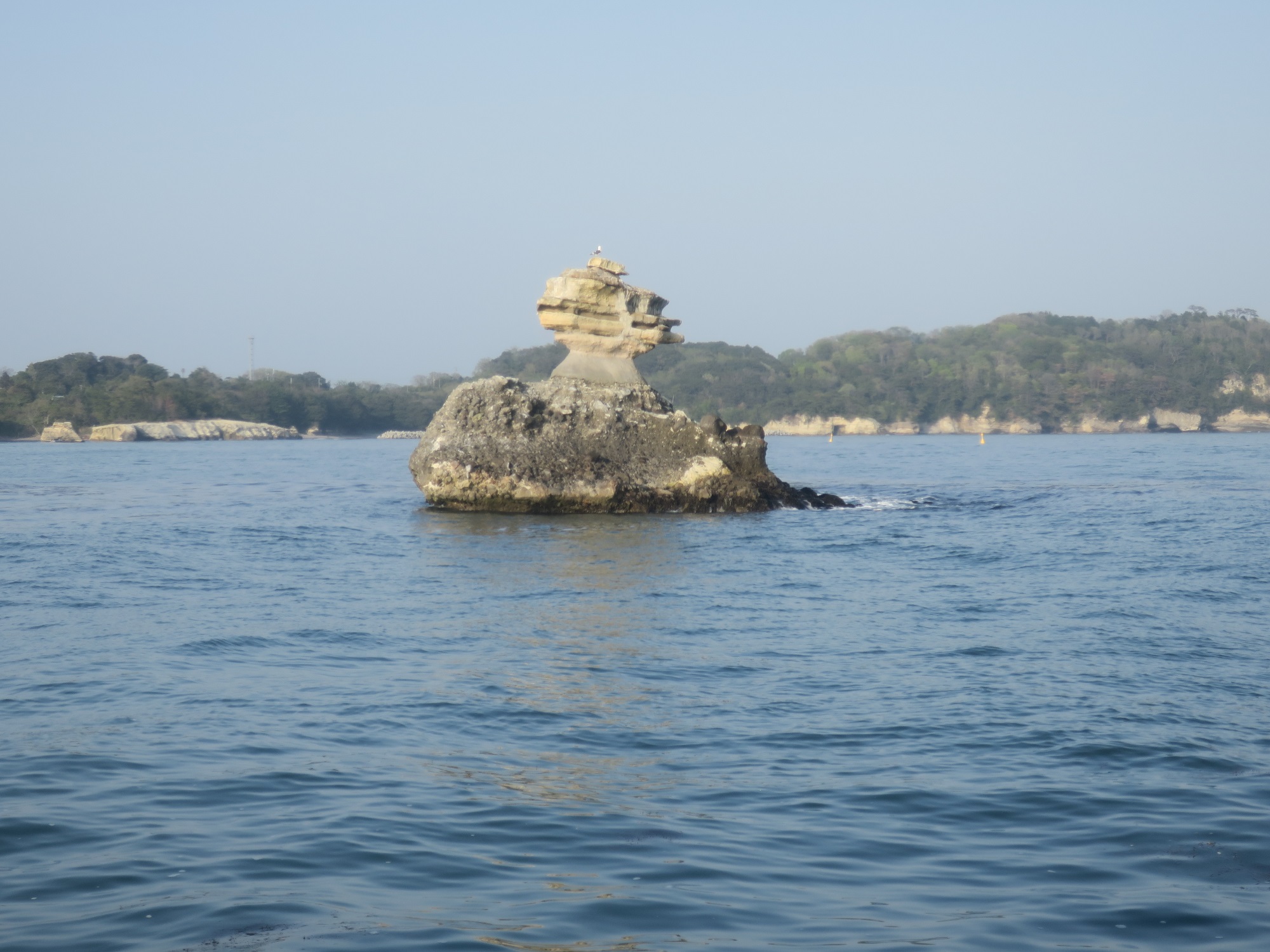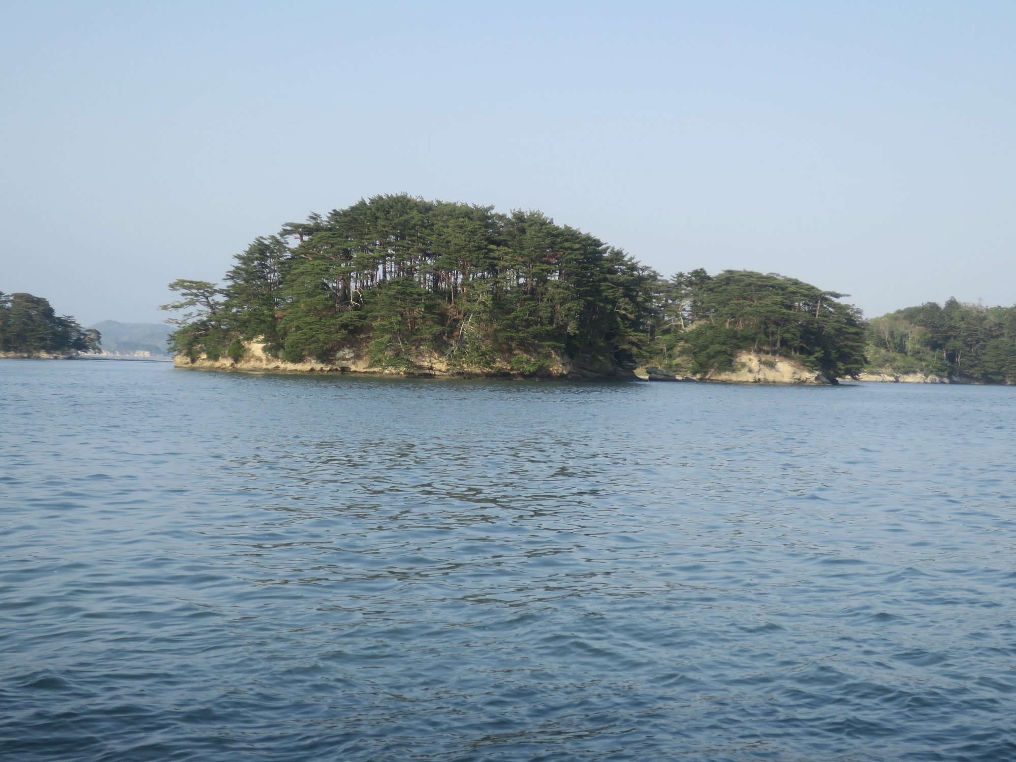 これは、鐘島です。この辺りから、松島の沖に出ます。波が大きい分、緑分が少なく、茶色いところが多い感じですね。