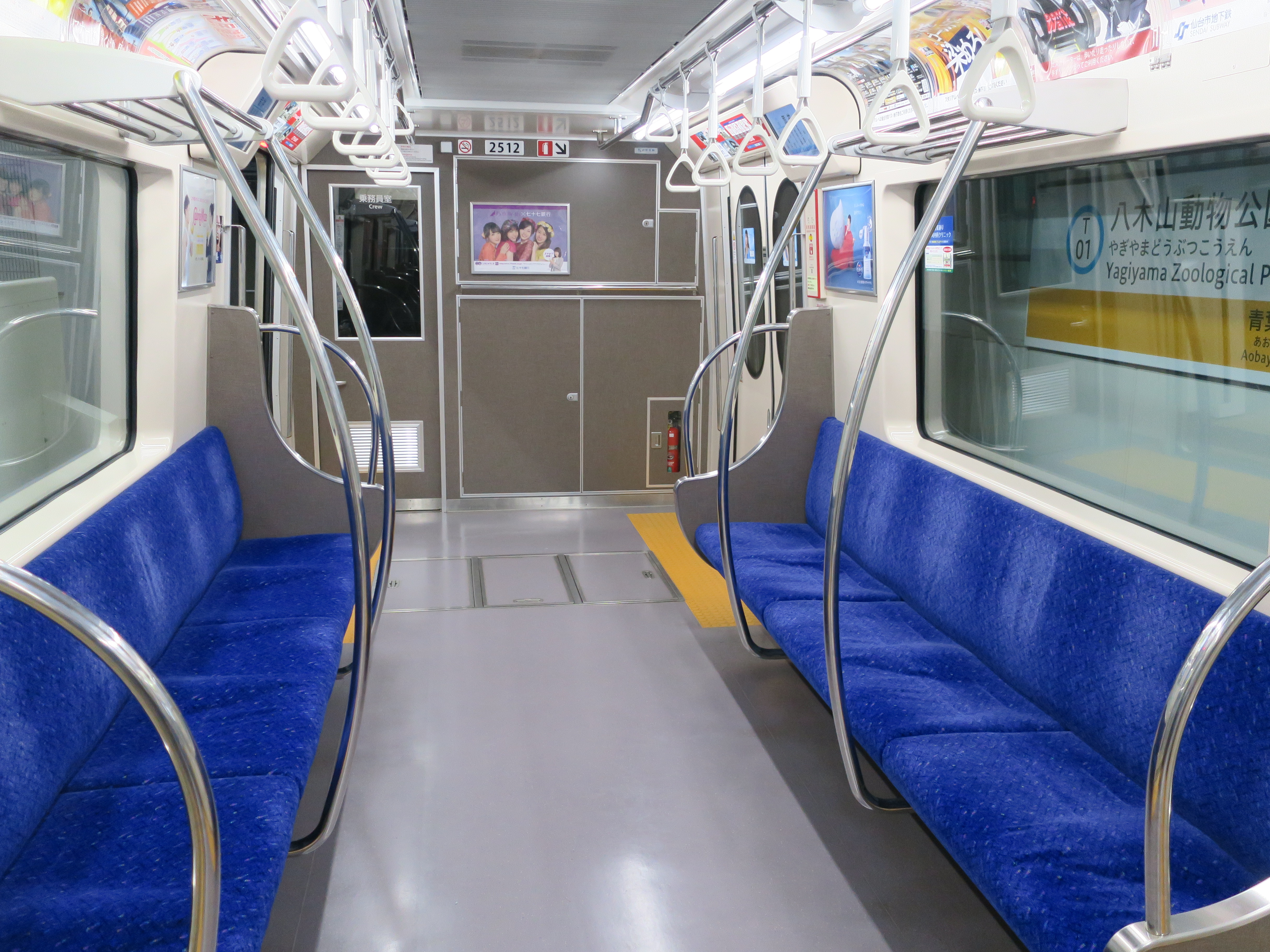 南北線の車両の中はこちら。一見すると普通のに見えるのですが・・・