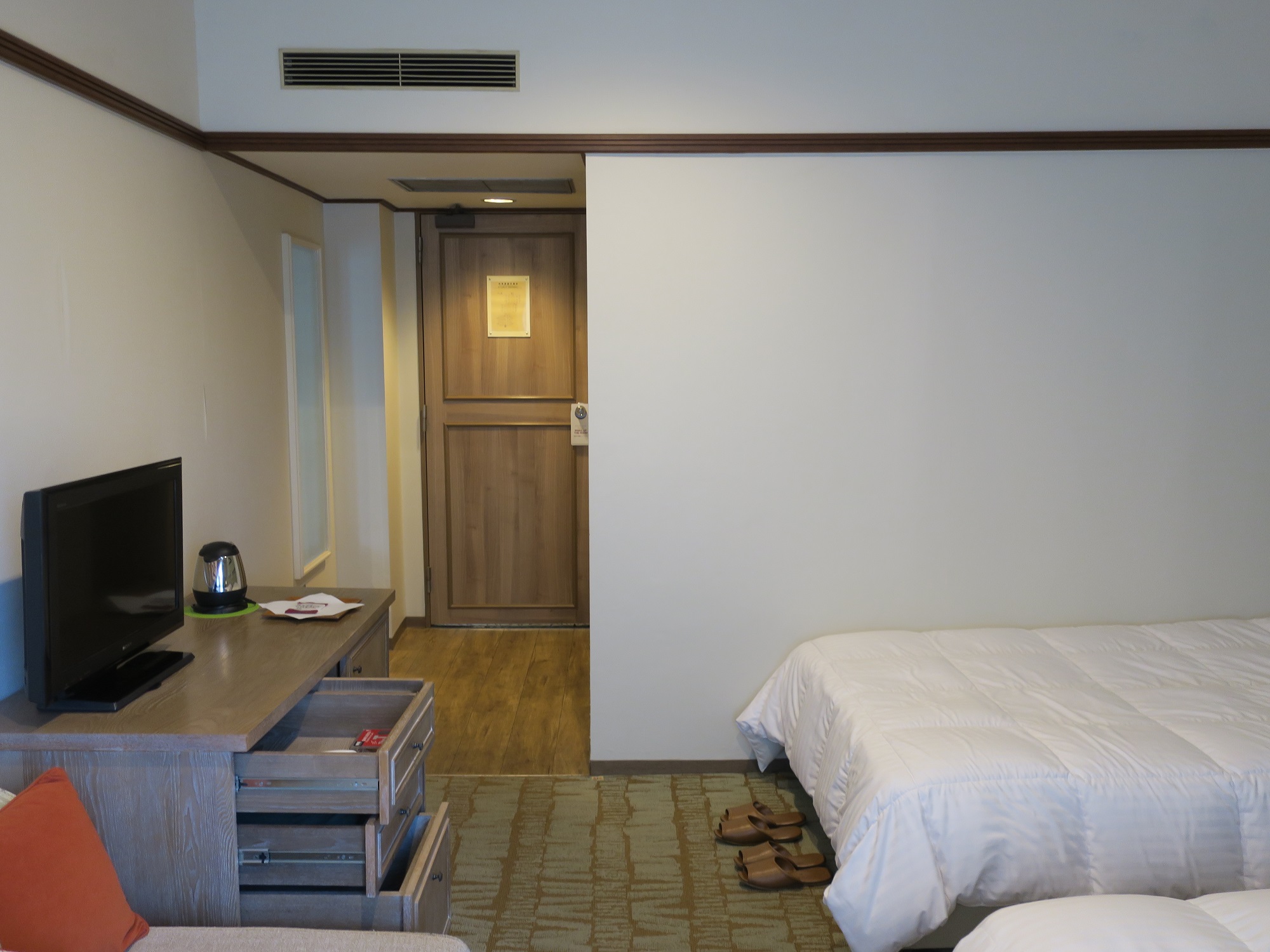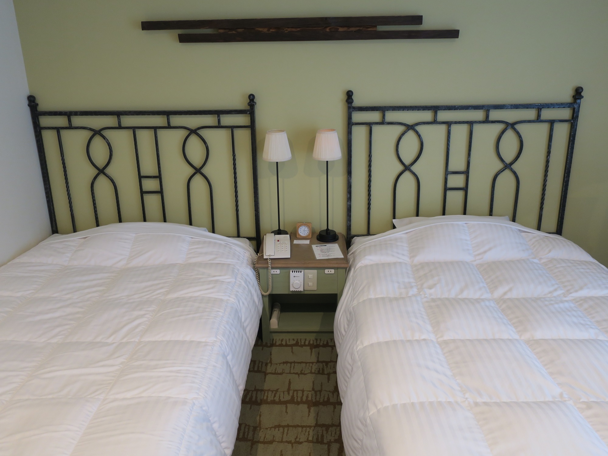 建物がいくつかあるのですが、キューティー吉本がお泊りしたのはタワー棟。ツインルームでした。ご覧の通り、かなりオシャレなお部屋です。