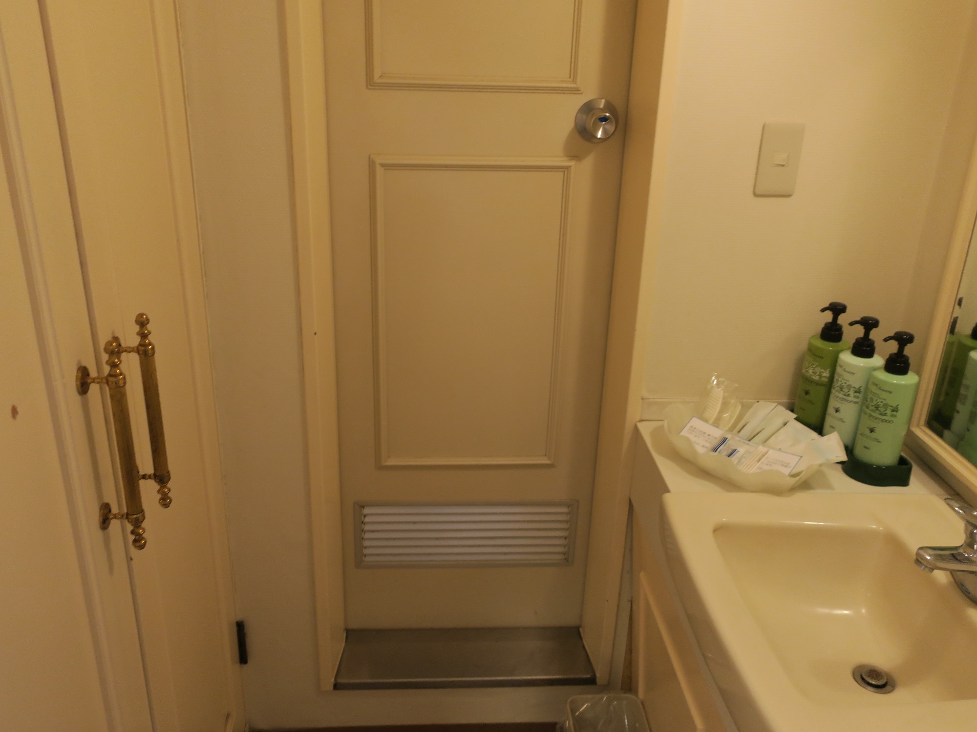 入り口の扉の横に、洗面台があります。この写真の左側がクローゼット、奥がバスルームです。