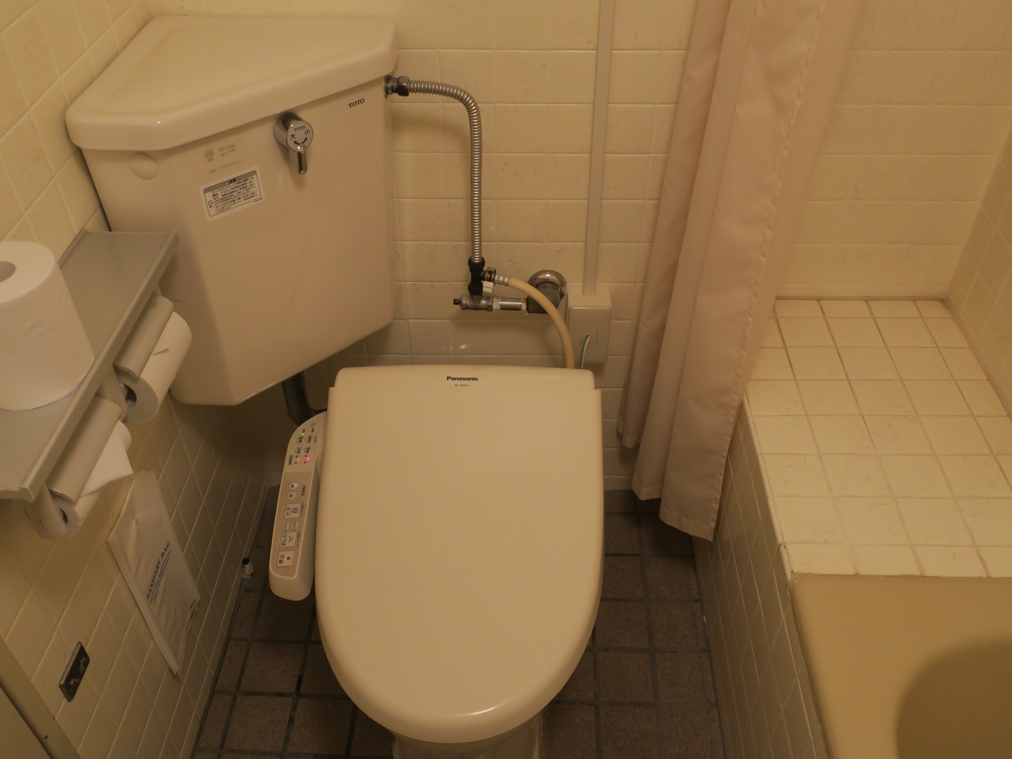 お風呂です。タイル張りという点と、水栓の形がどこか時代を感じます。ま、ここは草津温泉ですから、お部屋のお風呂を使うケースはあんまりないでしょう。