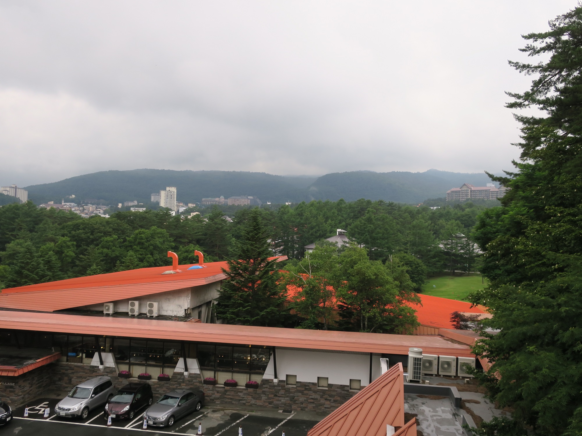 お部屋にはバルコニーが付いています。これが、窓から見える景色です。いや、さすが高原のリゾートって感じですね。