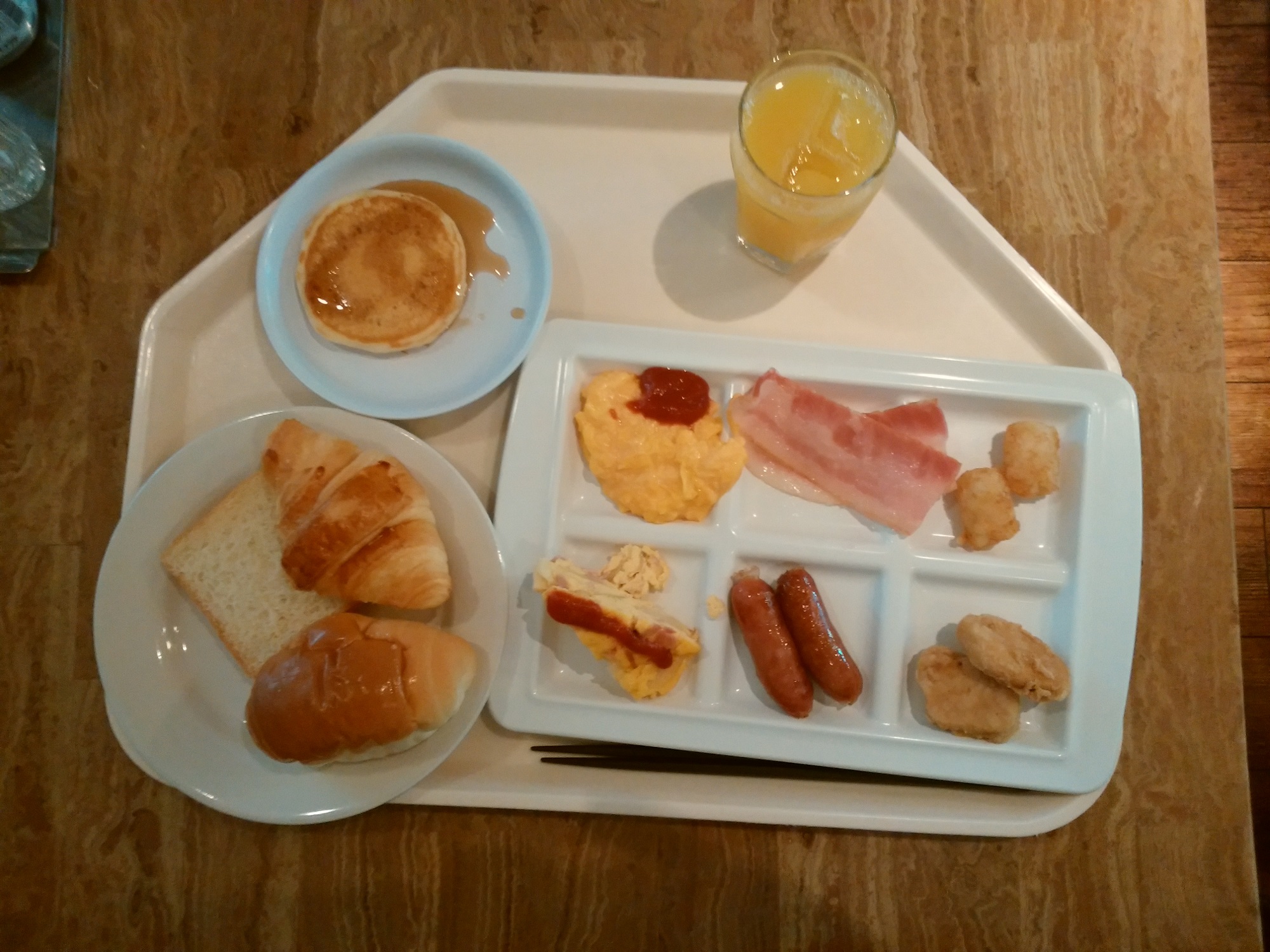 こちらが、朝食です。夕食同様、品数豊富でした。ホットケーキとスパニッシュオムレツは目の前で調理していました・・・が、キューティー吉本が手にした時には、すでに冷めていました。これじゃ何のために目の前で調理しているのかわからないですね。
