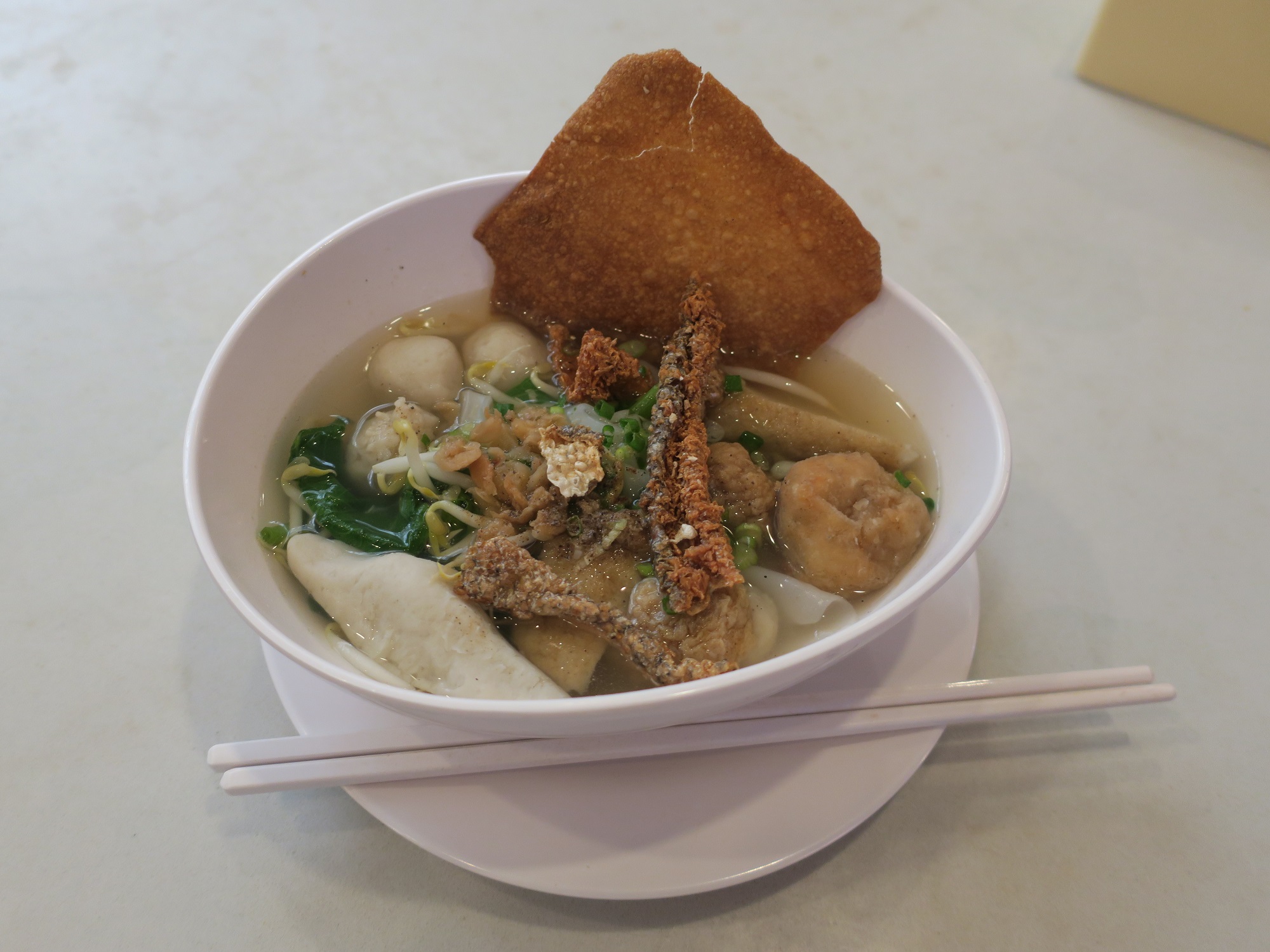 バンコクのフードコートにて。辛い物が全くダメなキューティー吉本が、悩んだ挙句に頼んだのがこれ。鶏のつみれが入ったヌードルでした。麺が見えないぐらい具だくさんで、うまかったですよ。