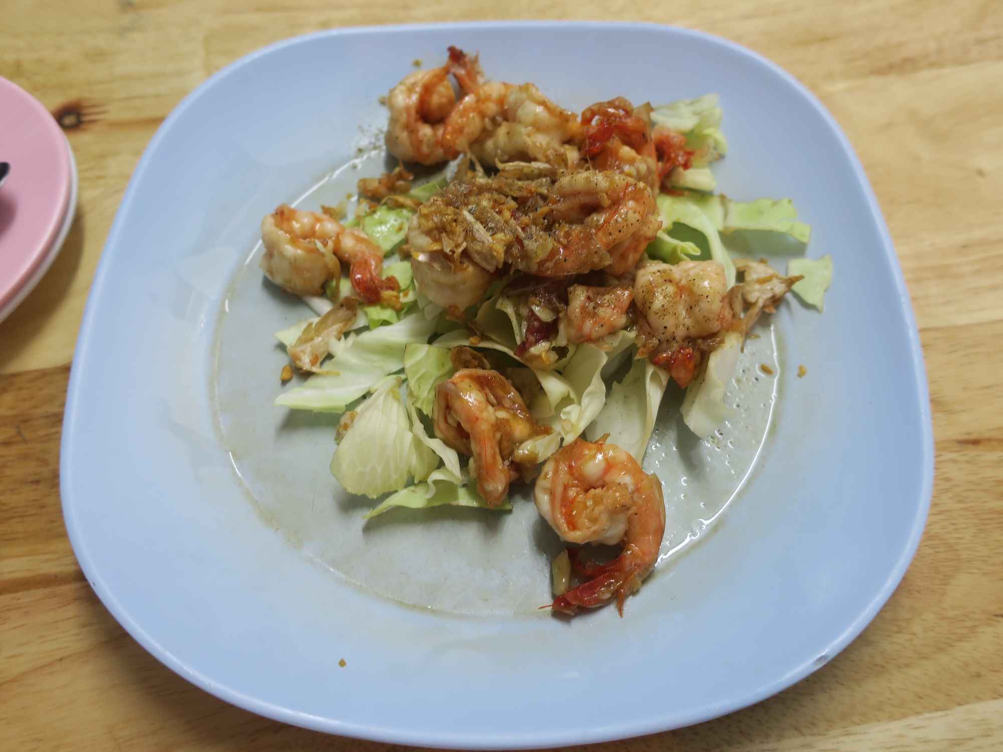 続いて、イカの炒め物。どちらも醤油ベースのような味付けで、しかもガーリックががっつり効いてて、うまかったですよ。やっぱり、バンコク在住の方に連れて行ってもらうのが間違いないですね。