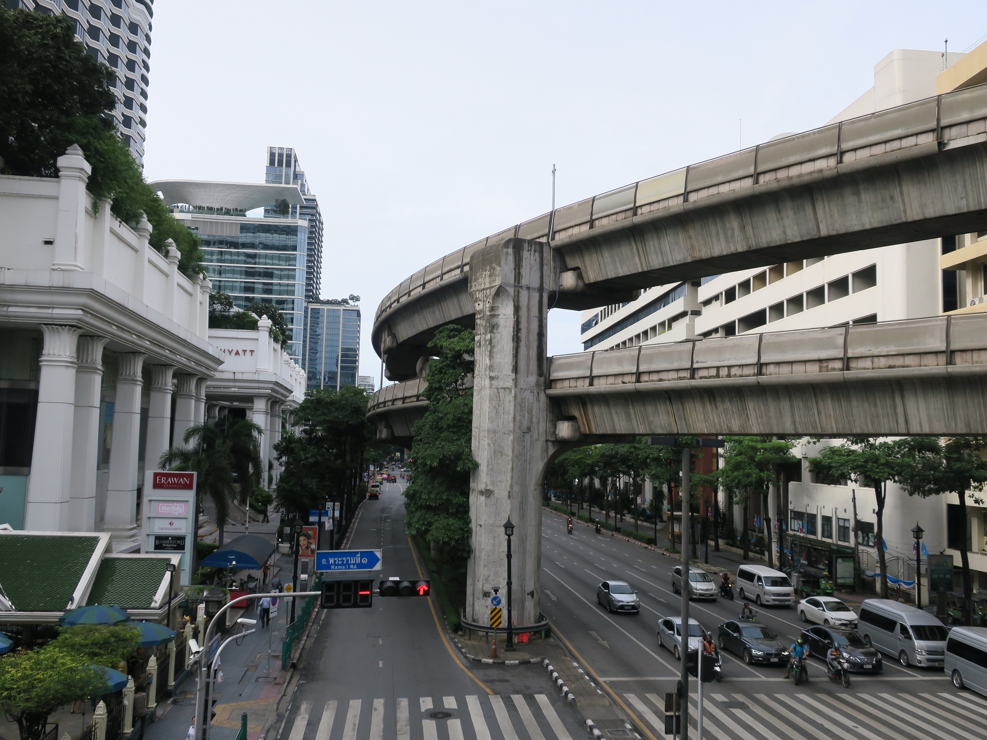 バンコクの特徴なのですが、立体化は基本的に、地下ではなく高架を作るポリシーです。このため、バンコクの町の至る所に歩道橋があります。ただ、サイアム全体をつなぐまでには至らず、上ったり下りたりが大変だったりします。