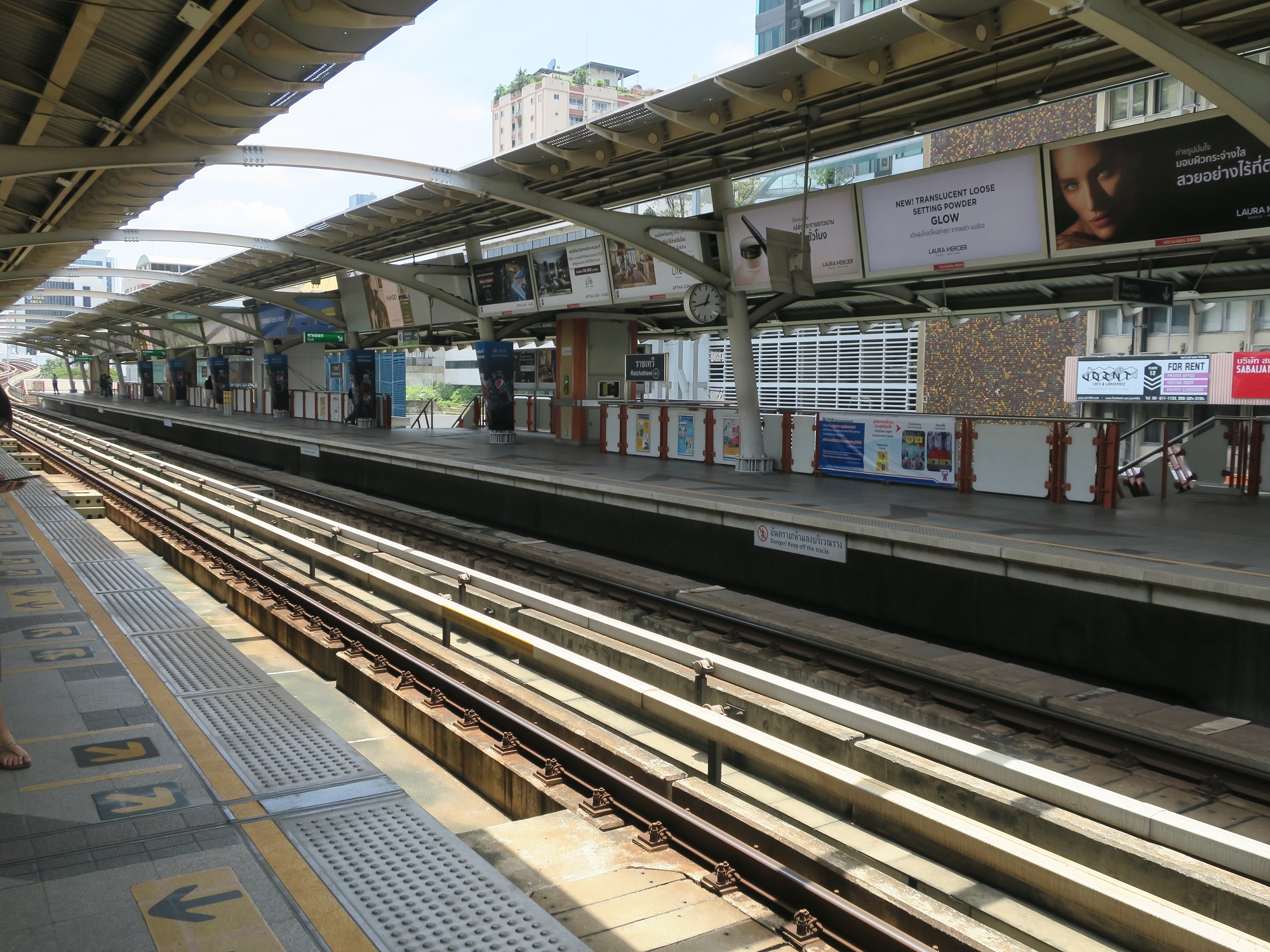 BTSの駅はこんな感じ。ここは、ラチャティーウィ駅です。架線がない点を除けば、日本の駅と似た感じです。ちなみに、ラチャティーウィ駅のお隣のサイアム駅で、2つの線を相互に乗り換えできます。