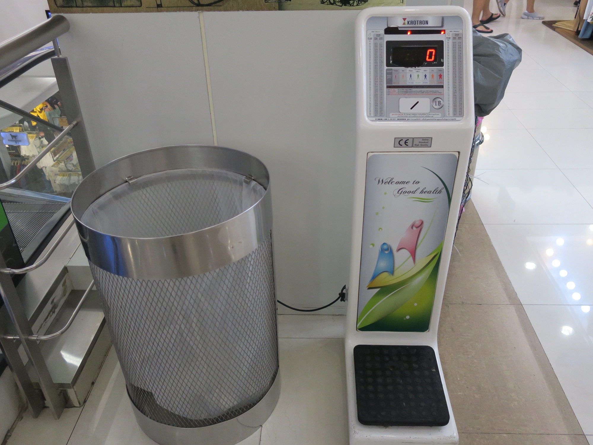 プラチナ・ショッピング・モールで見つけた体重計。1バーツ(約3.3円)で測ることができます。