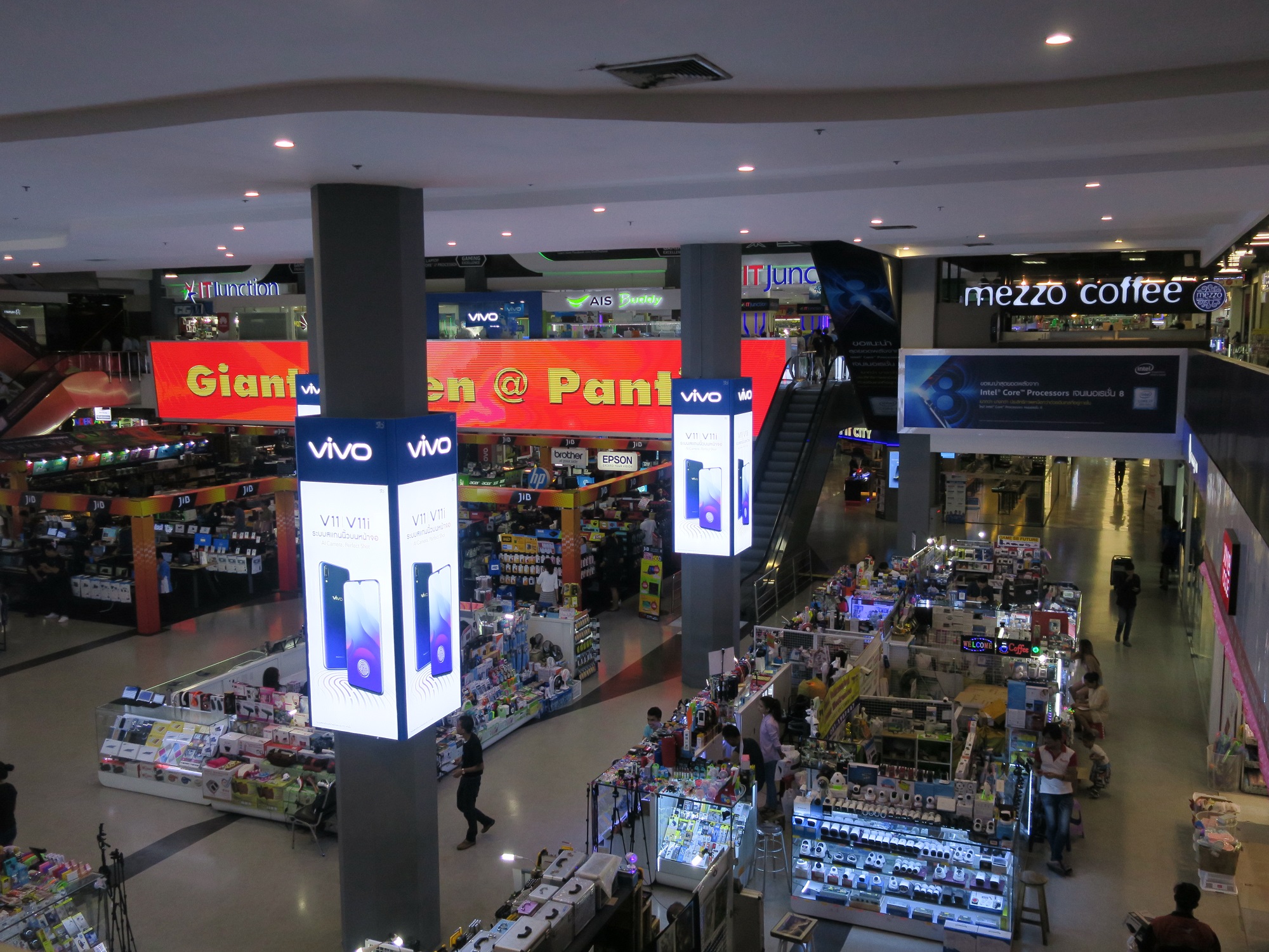 これが、パンティップの中です。特徴として、一店一店が専門店になっています。例えば、「ここはスマホ専門店」「ここはPCパーツ専門店」「ここは中古PC専門店」「ここはプリンタ専門店」といった感じです。値札がないお店も多く、買い物するにはちょっと勇気がいるかもしれません。