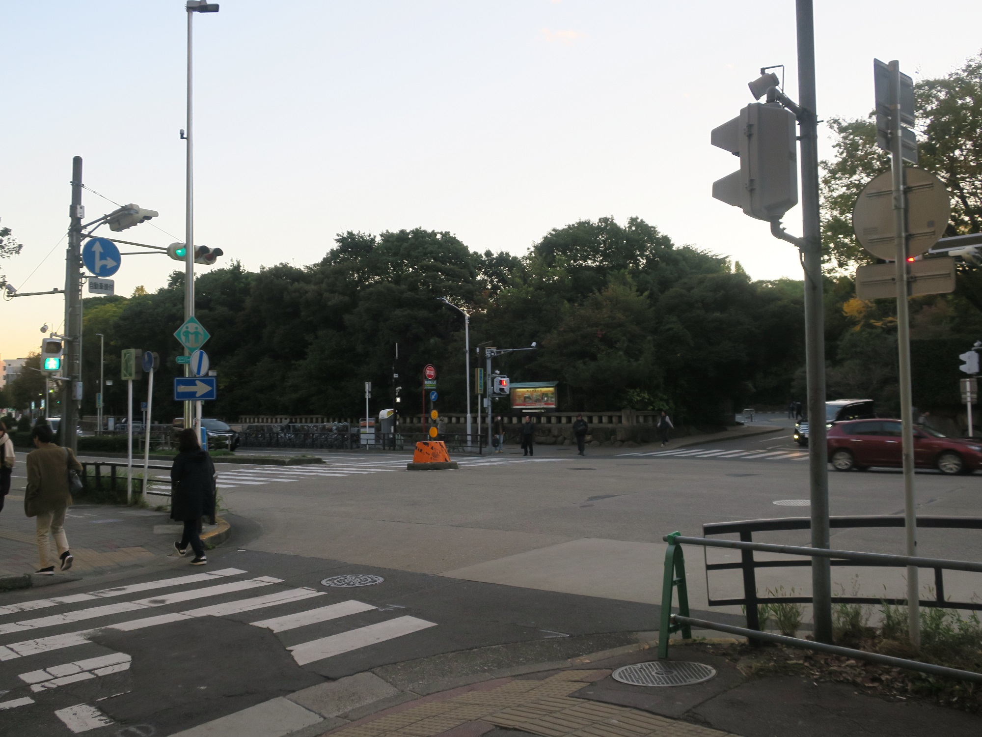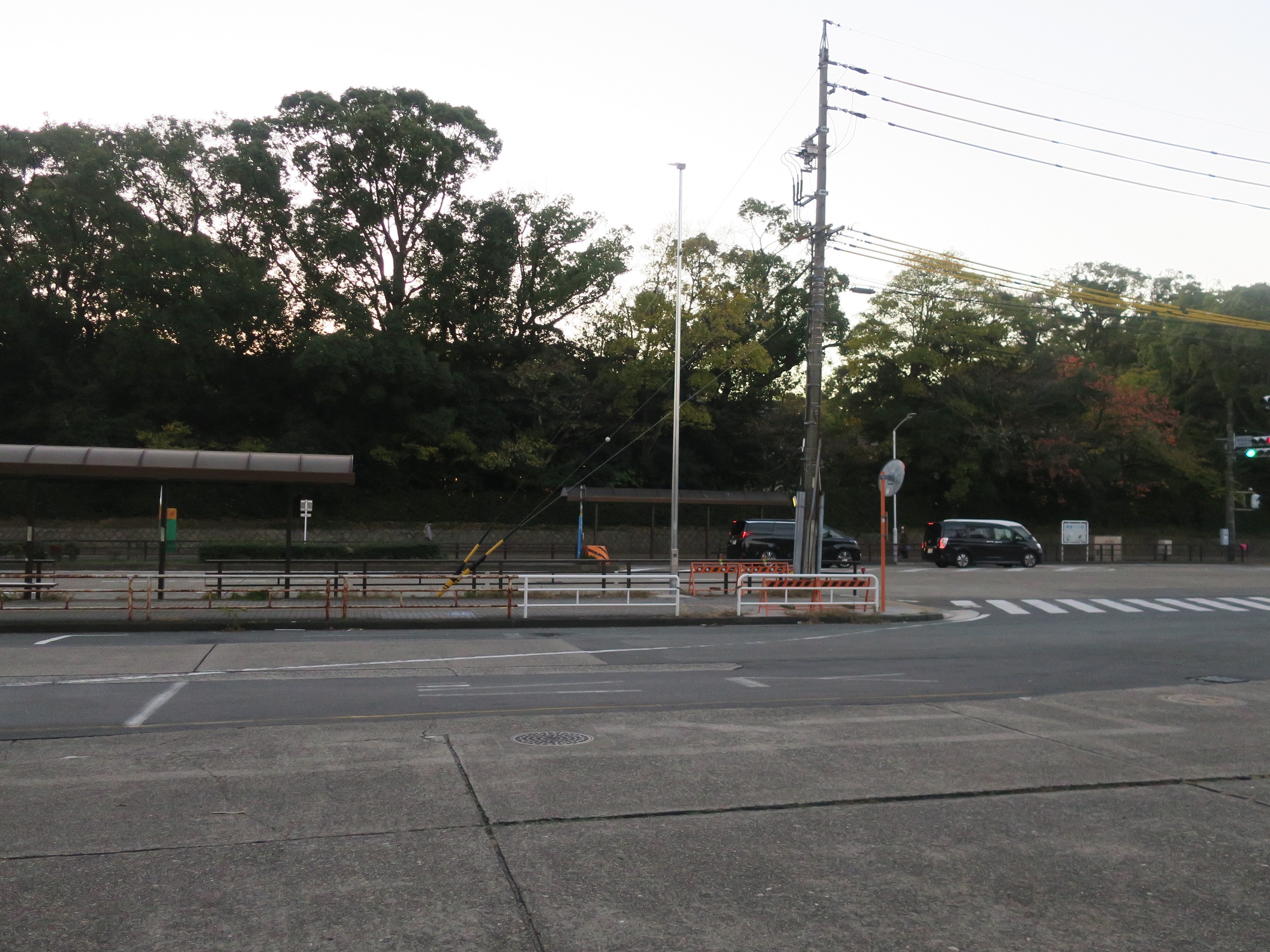 で、ここが罠なのですが、歩道橋や横断歩道を渡った先にある入り口からは入らずに、左へ曲がるんです。ちなみに、この横断歩道を渡った先の入り口(黒い車が止まっているところ)は、駐車場と熱田神宮会館(結婚式場)への入り口です。