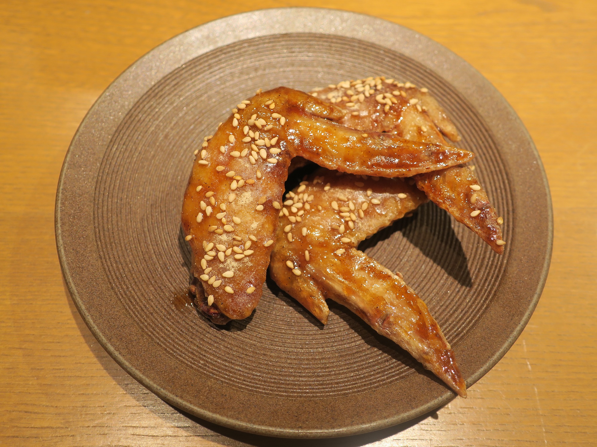 名古屋のド定番、手羽先の唐揚げです。甘辛い・・・いや、後味がちょっとピリッと来るたれで味付けされていまして、これがビールに合うんですねー