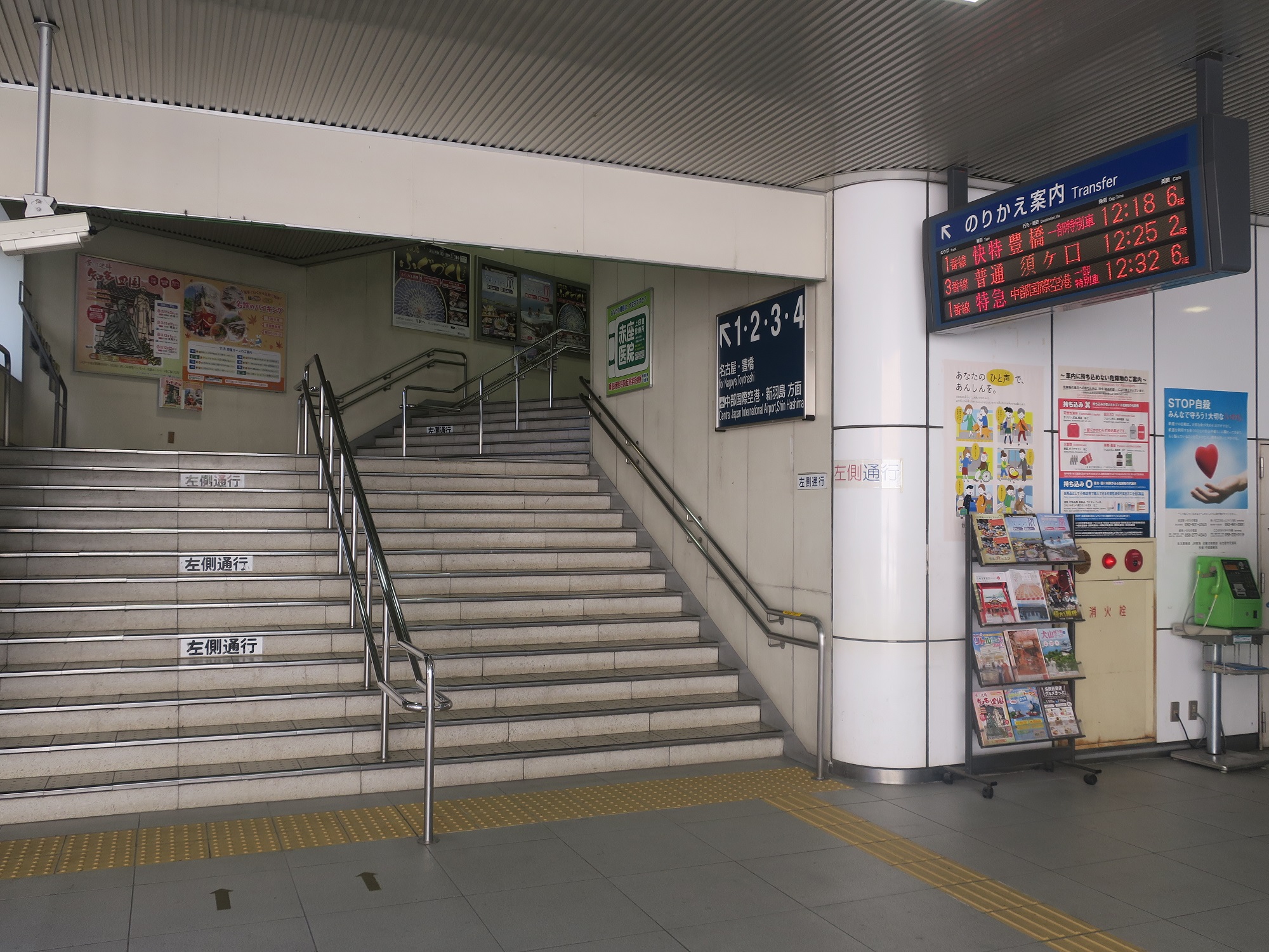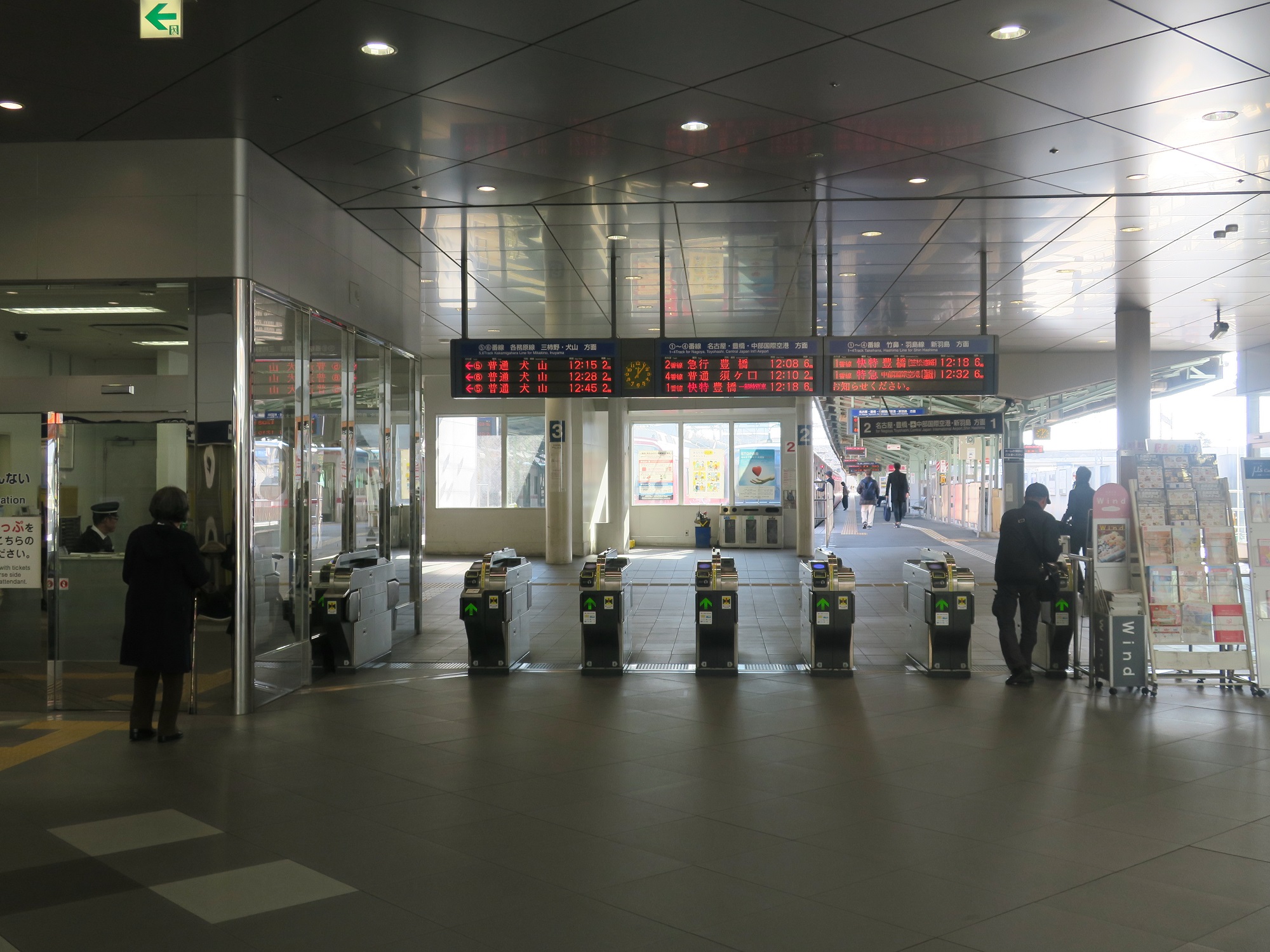 名古屋本線の駅と、各務原線の駅は、実は中でつながっています。名古屋本線と各務原線を乗り換えるときは、連絡通路を通ります。