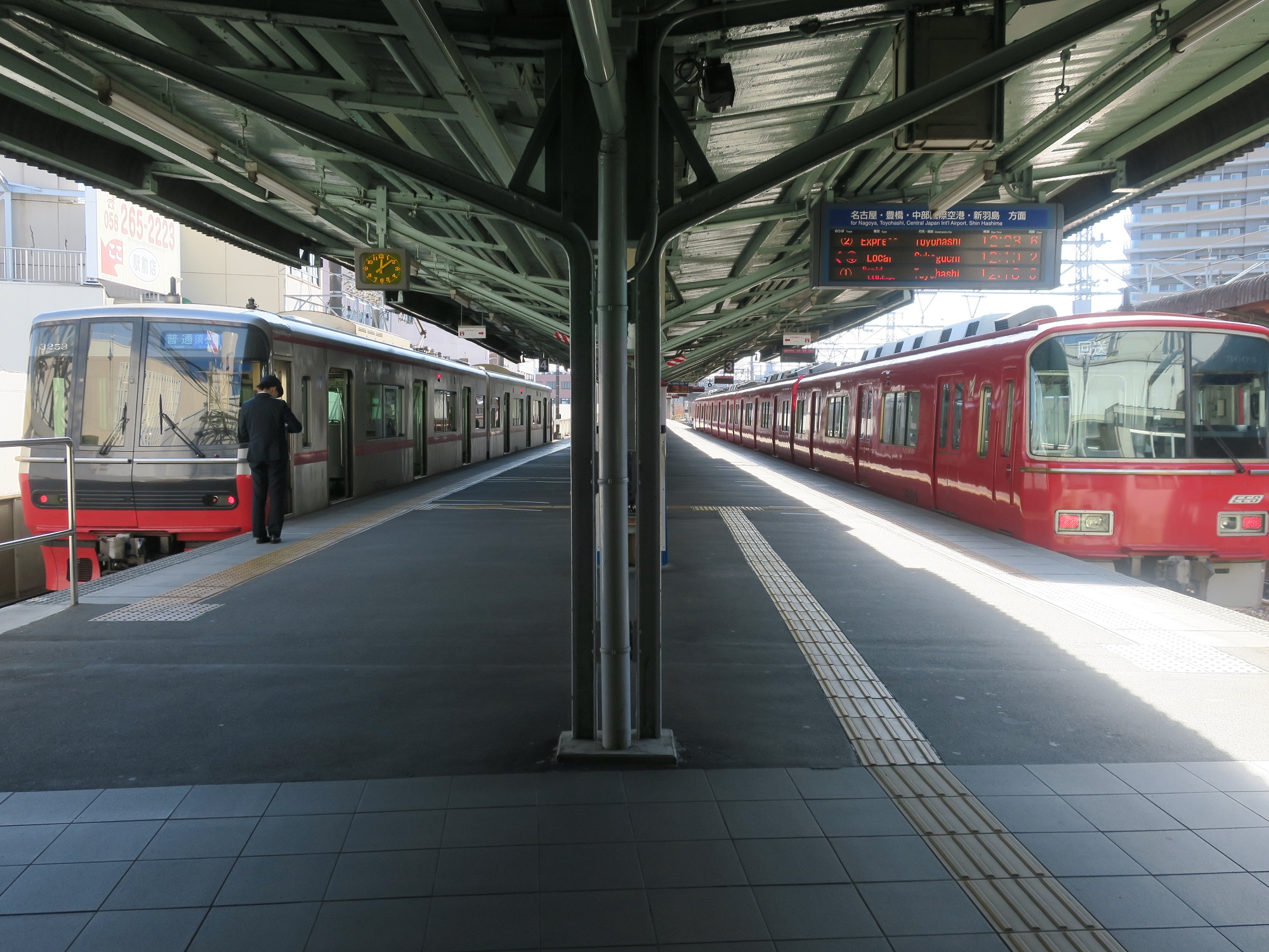名古屋本線のホームは、列車が4本止まれます。改札口から向かって右側に、1番線・2番線があります。主に、名古屋・中部国際空港・豊橋方面に行く列車が発着します。