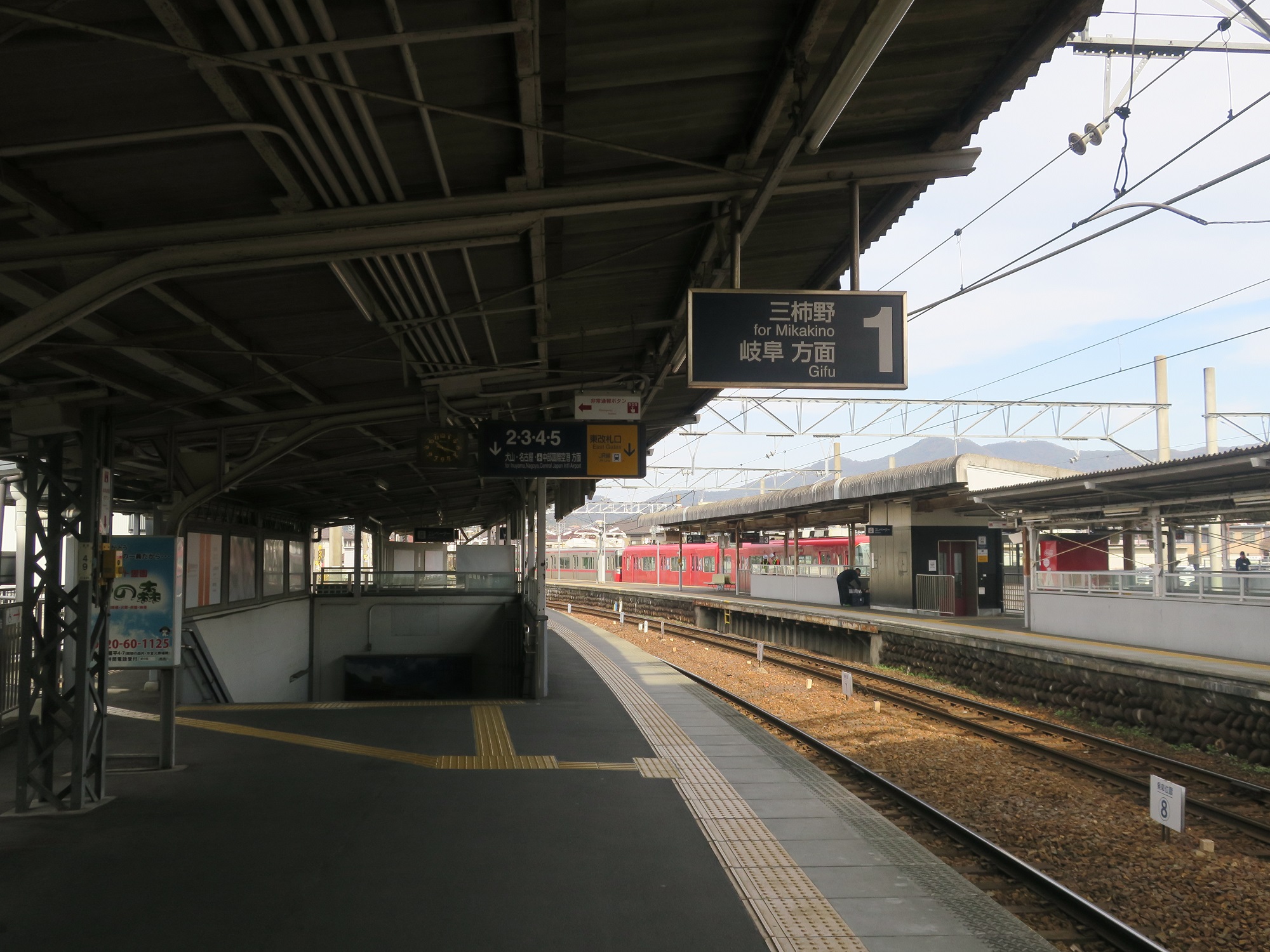 1番線です。主に各務原線で、岐阜方面に行く列車が発着します。