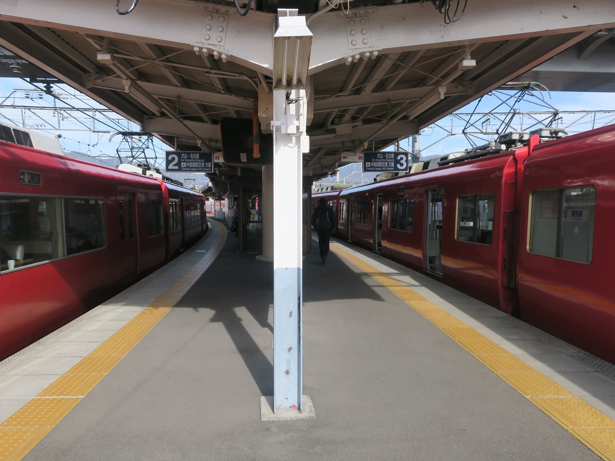 2番線・3番線です。主に犬山線で、犬山・名古屋・中部国際空港方面に行く列車が発着します。うち2番線は、岐阜方面から新鵜沼駅を経由して、犬山方面に行く列車が発着します。