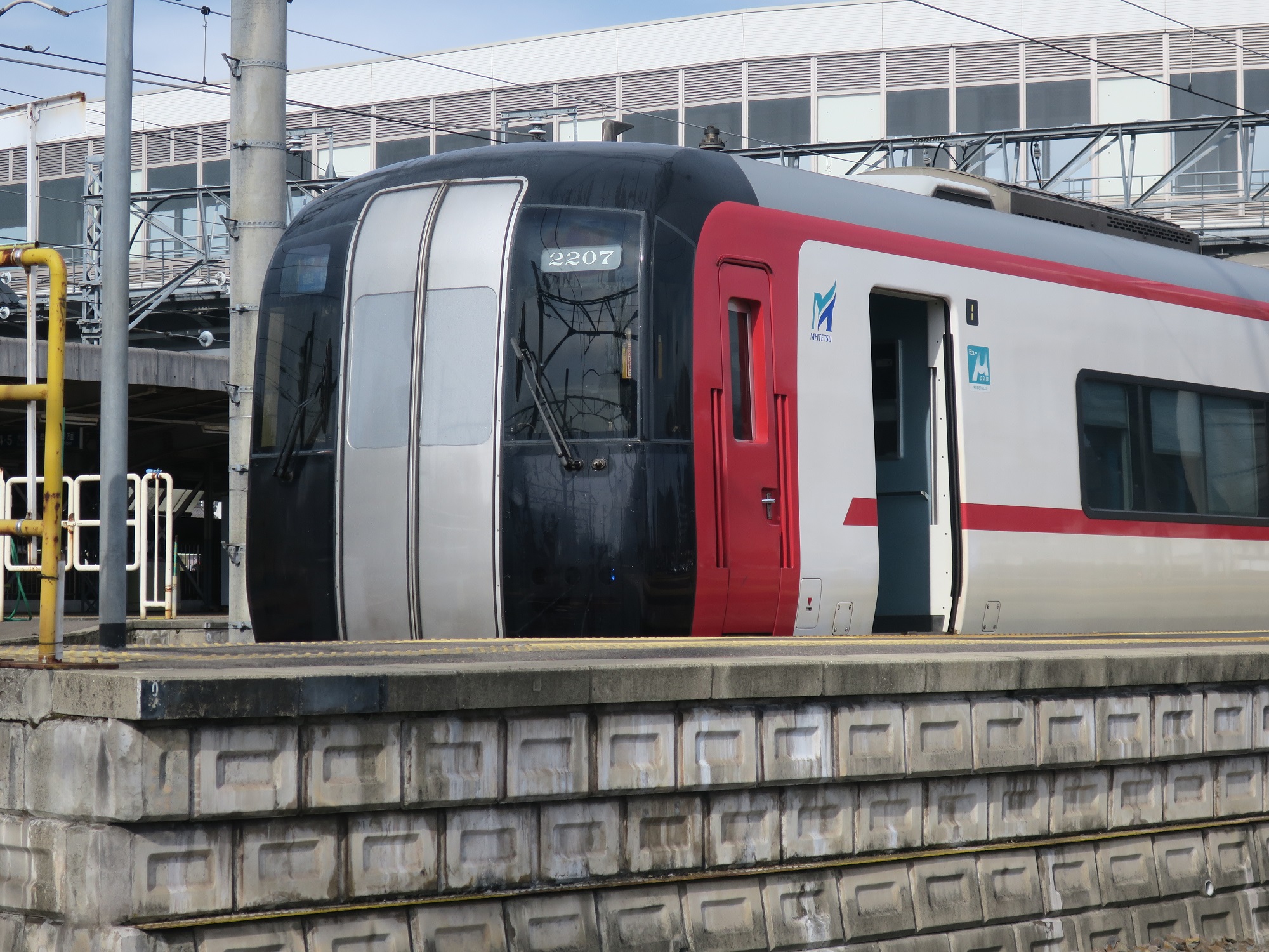 名古屋鉄道のフラッグシップ、ミュースカイです。名古屋・岐阜・新鵜沼から、中部国際空港を結びます。豊橋方面からは、神宮前駅で乗り換えです。4両編成で、全車指定席です。