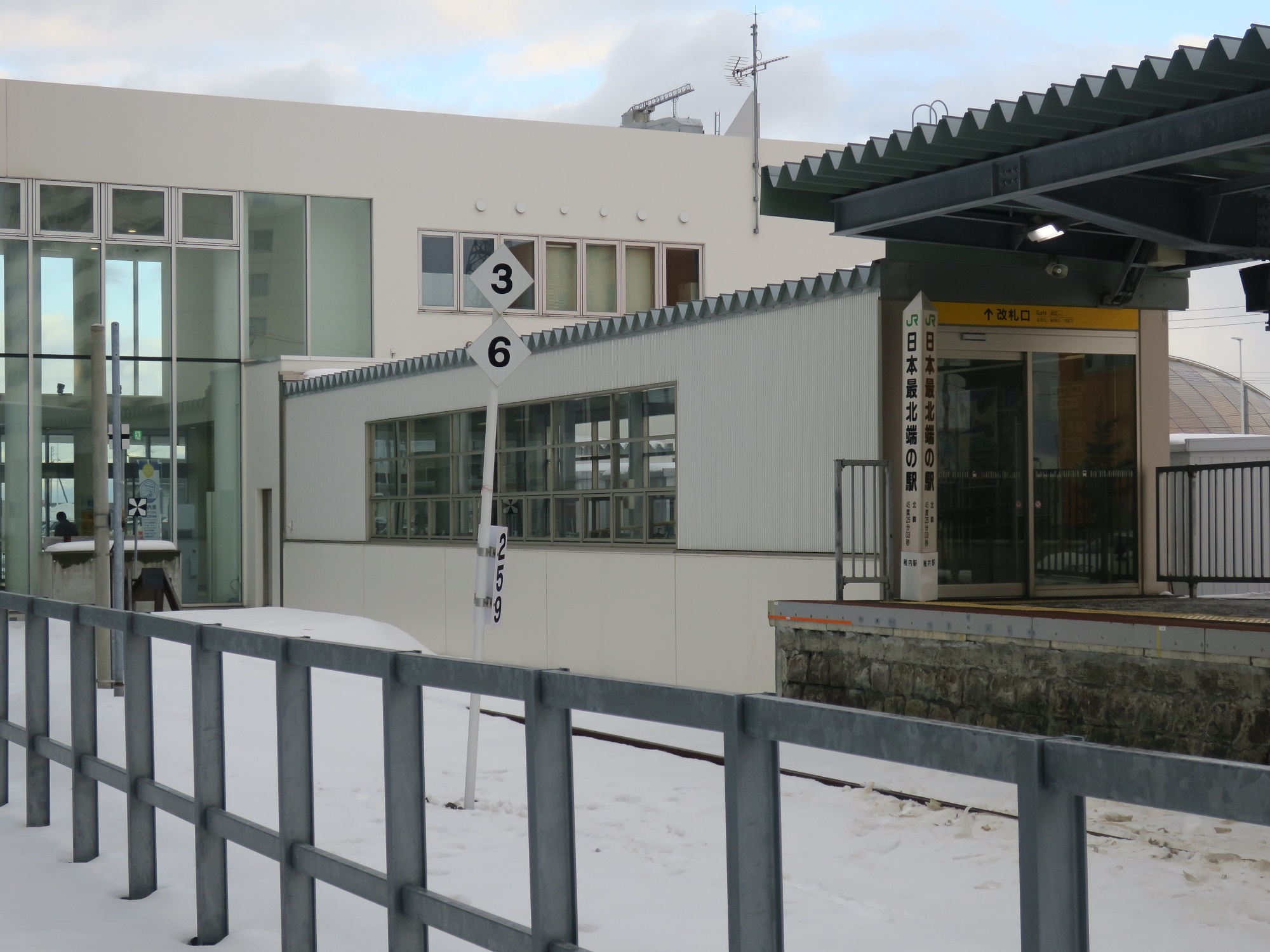 ホームの端には、「日本最北端の駅」と書いてあります。同じ形の表示が、JR最南端の駅の西大山駅にもあります。