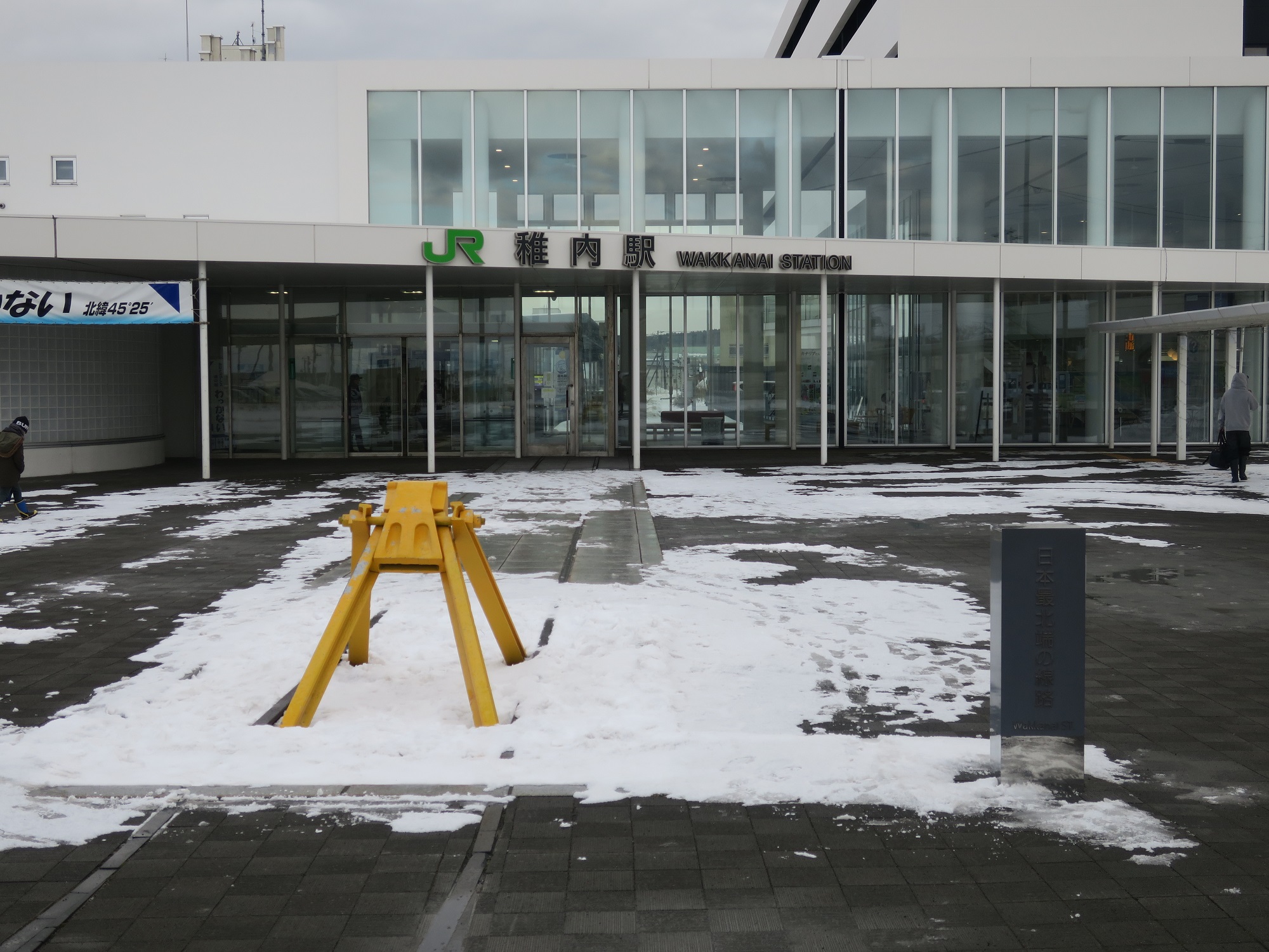 JR宗谷本線の稚内駅です。日本最北端の駅で、ホームには「北と南の始発・終着駅」と書いてあります。ちなみに、南の終着駅は、JR指宿枕崎線の枕崎駅です。