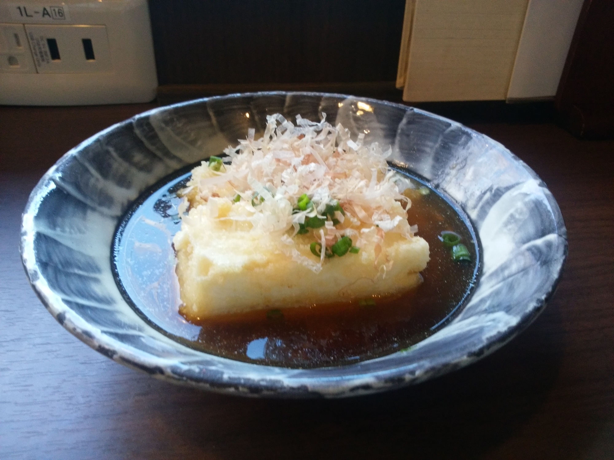 まず最初に頼んだのが、揚げ出し豆腐。揚げ具合と言い、だしの感じと言い、ちょうどいい感じですね。うまかったですよ。ちなみに、500円でした。