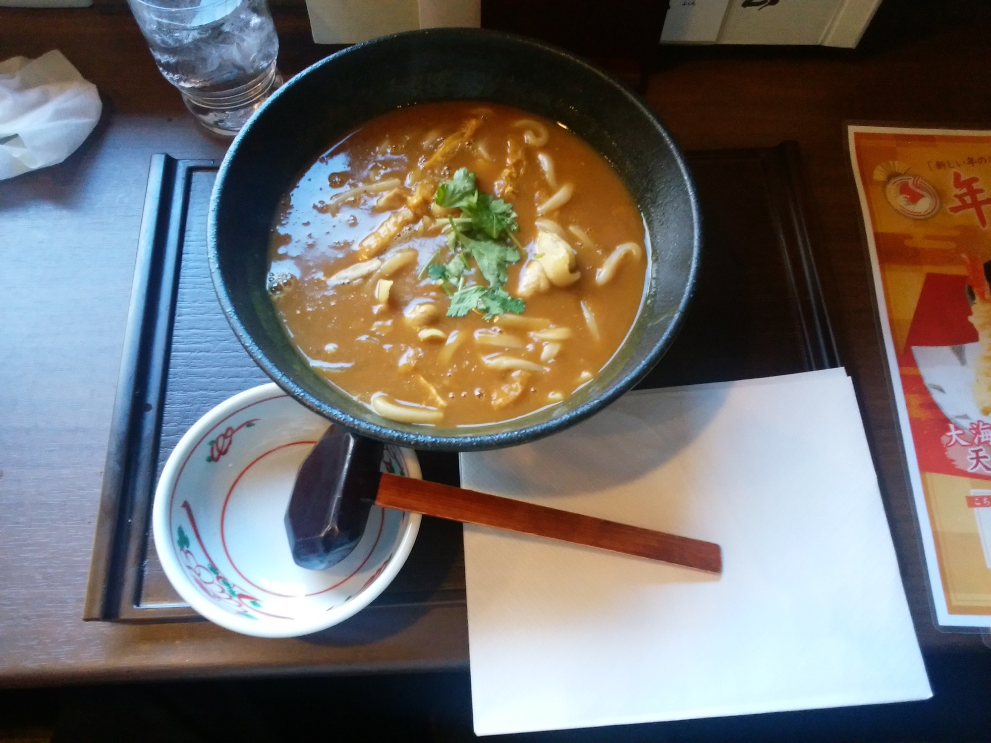 最後の〆が名物カレーうどんです。750円と意外といいお値段なので、これは期待できるかな・・・と思ったのですが、意外にフツーのカレーうどんでした。最大の原因は恐らく、甘めのカレーだしでパンチがない感じだったからと思われます。なので、ちょっと期待外れな結果でした。