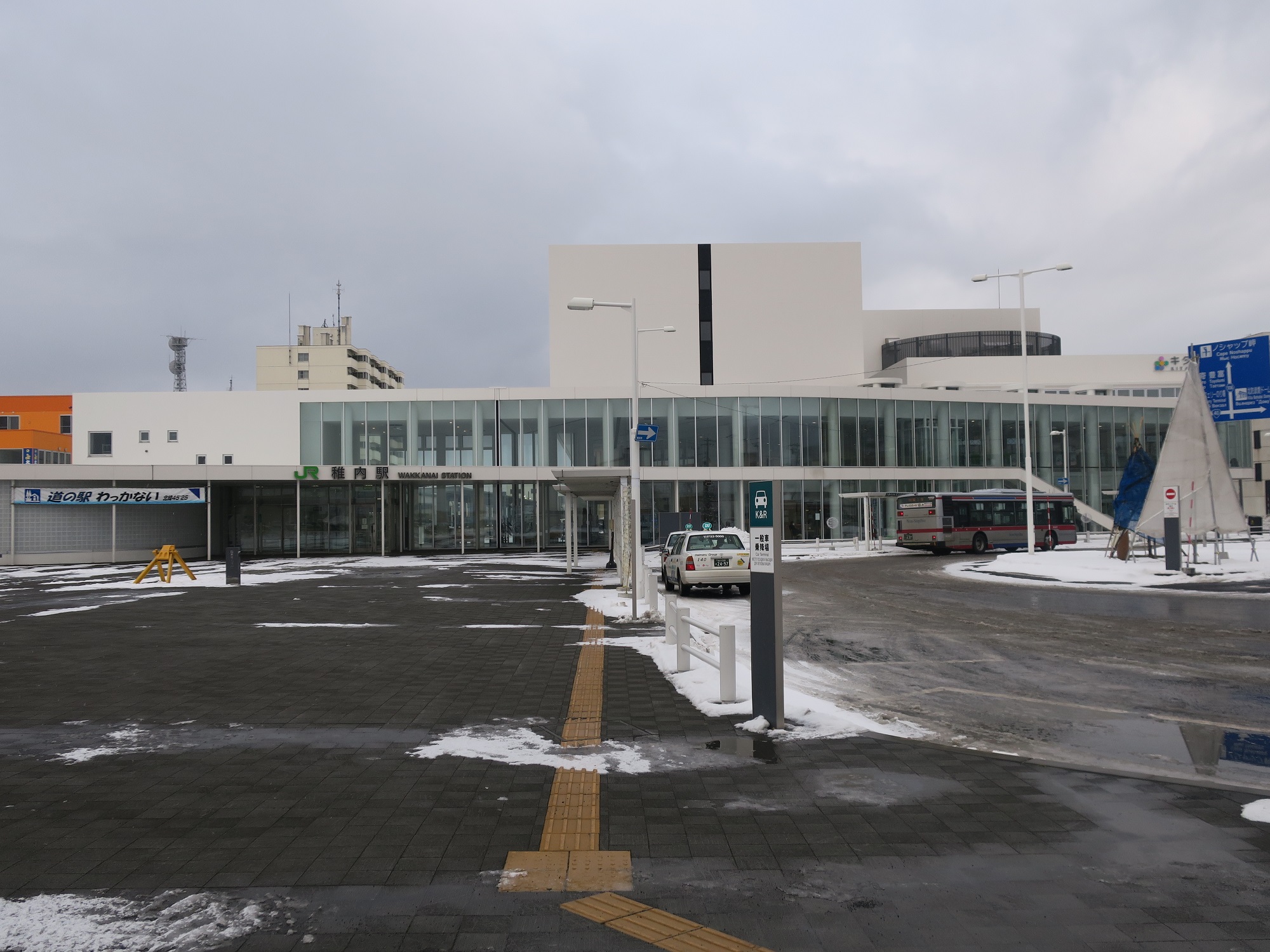 連絡通路を渡った先に、階段とエレベーターがあります。1階に降りると、ふじやま温泉の正面玄関です。