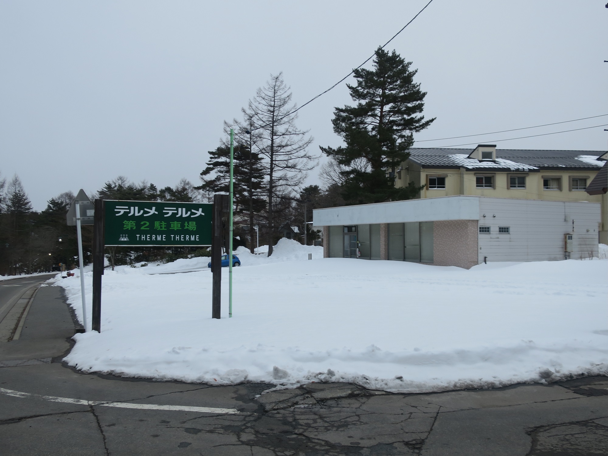 でもって、「テルメテルメ 第2駐車場」なる看板が。これもしかして、跡地はコンビニとして復活させるのではなく、駐車場として再利用しようということなんでしょうかねぇ。ホテルヴィレッジに泊まった時に買い出しに行ったり、町内循環バスが来るまで暇つぶししたりするときに便利だったのですが、残念です。