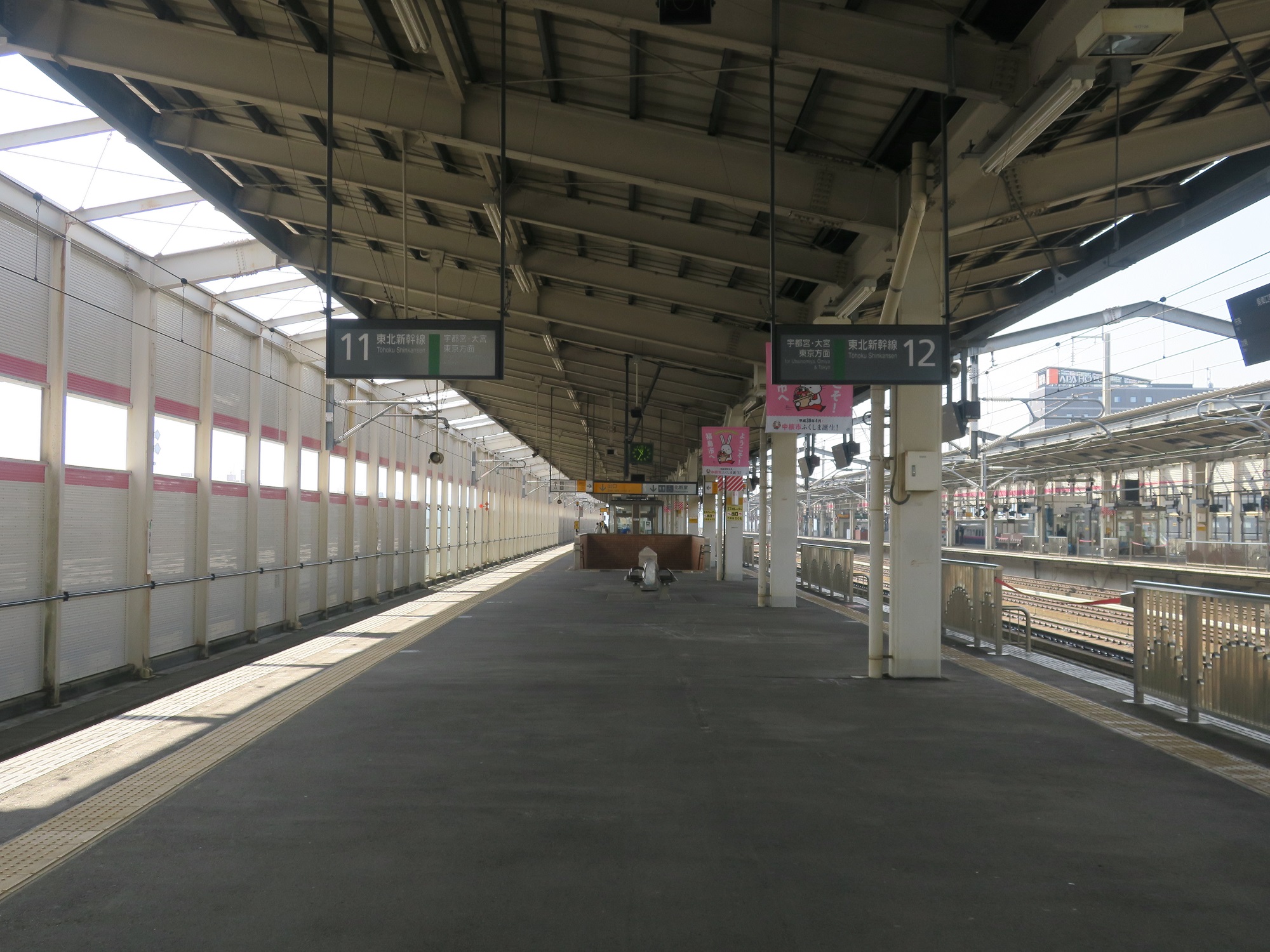 11番線・12番線です。東北新幹線で、宇都宮・大宮・上野・東京方面に行く列車が発着します。