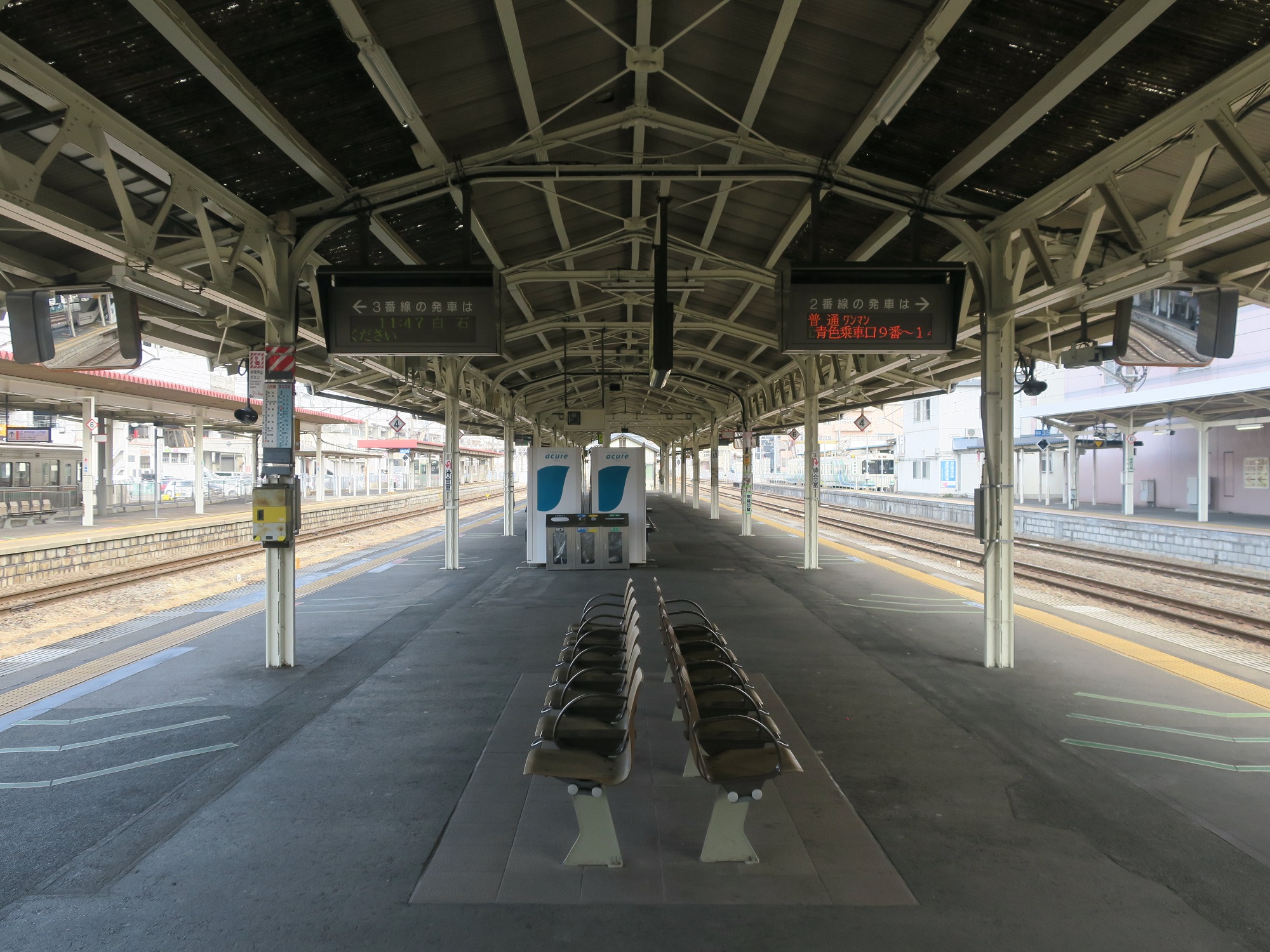 2番線・3番線です。主に東北本線で、白石・仙台方面に行く列車が発着します。便数は日中時間帯でおよそ1時間に1本ぐらいですが、郡山方面に行く列車よりは若干多いみたいです。