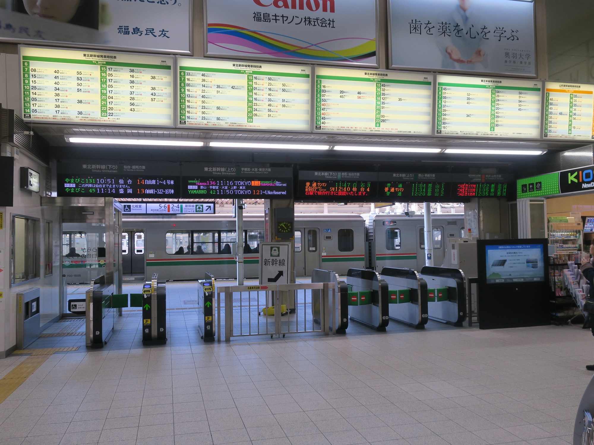 東口の改札口です。SuicaなどのICカード対応の自動改札機が並びます。Suicaの仙台エリアに入るのですが、おおむね福島県の東北本線周辺であれば問題なく使えます。