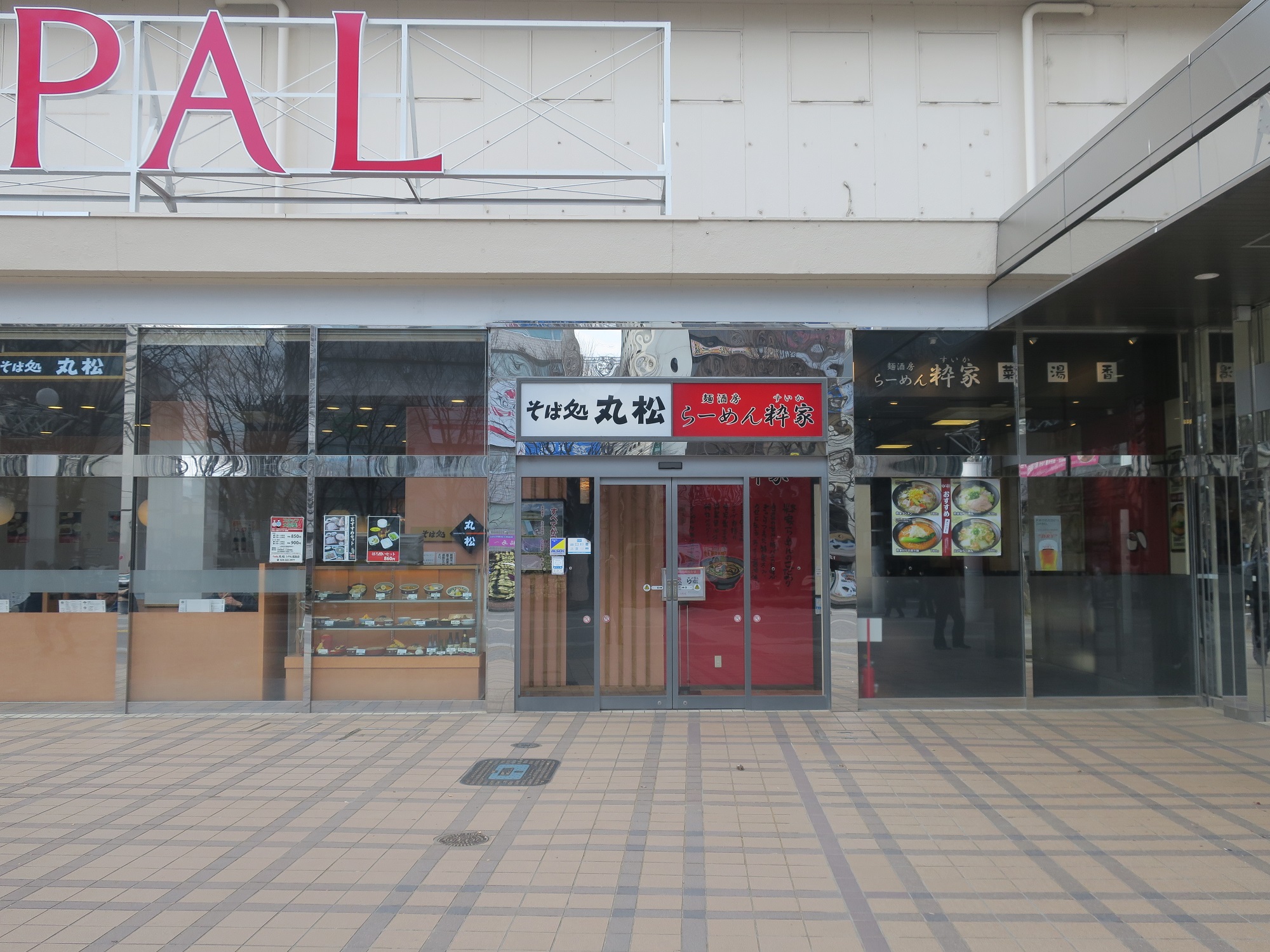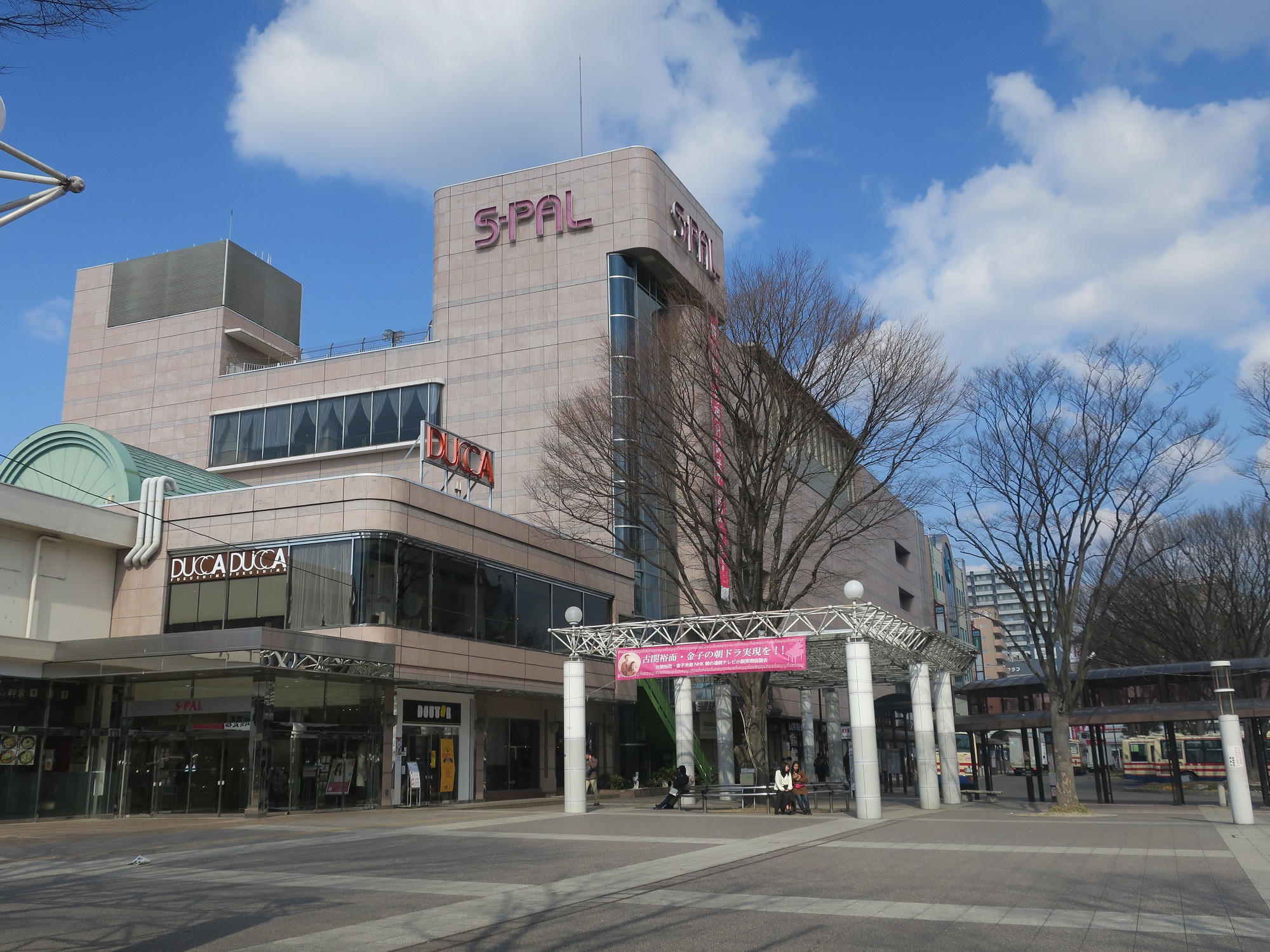 東口の駅ビル、S-PALです。S-PALの前がバスターミナルになっています。