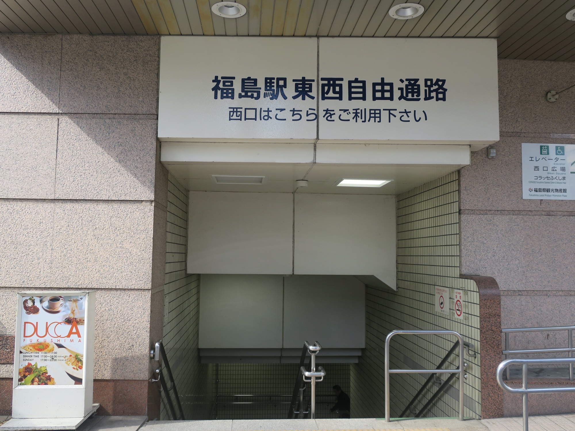 切符を持っていない人が、東西を結ぶこ線橋を渡ることはできません。このため、東口から西口(あるいはその逆)へ行くには、地下の東西自由通路を通ります。