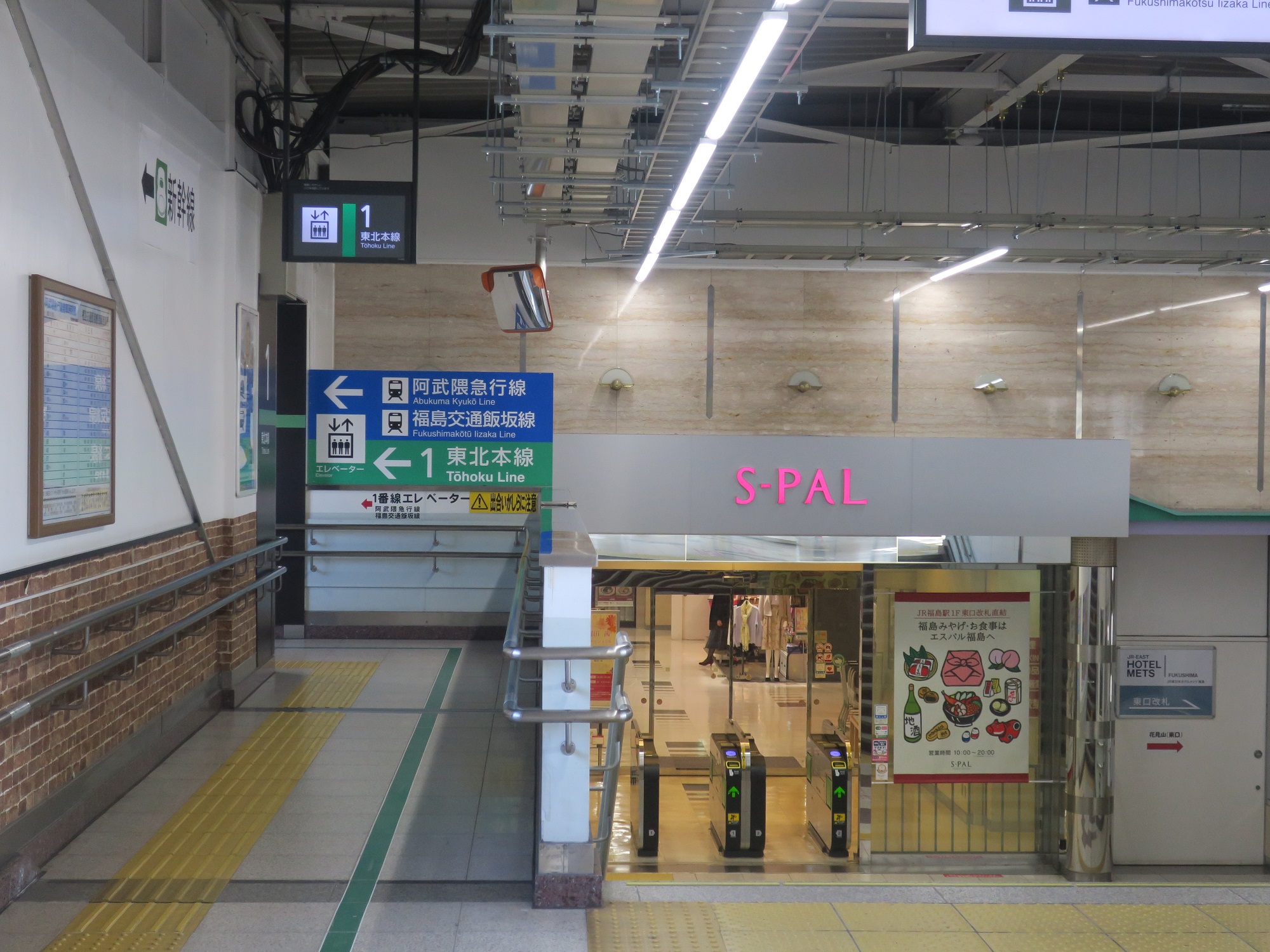1番線の端には、阿武隈急行線と福島交通飯坂線の乗り換え改札口があります。