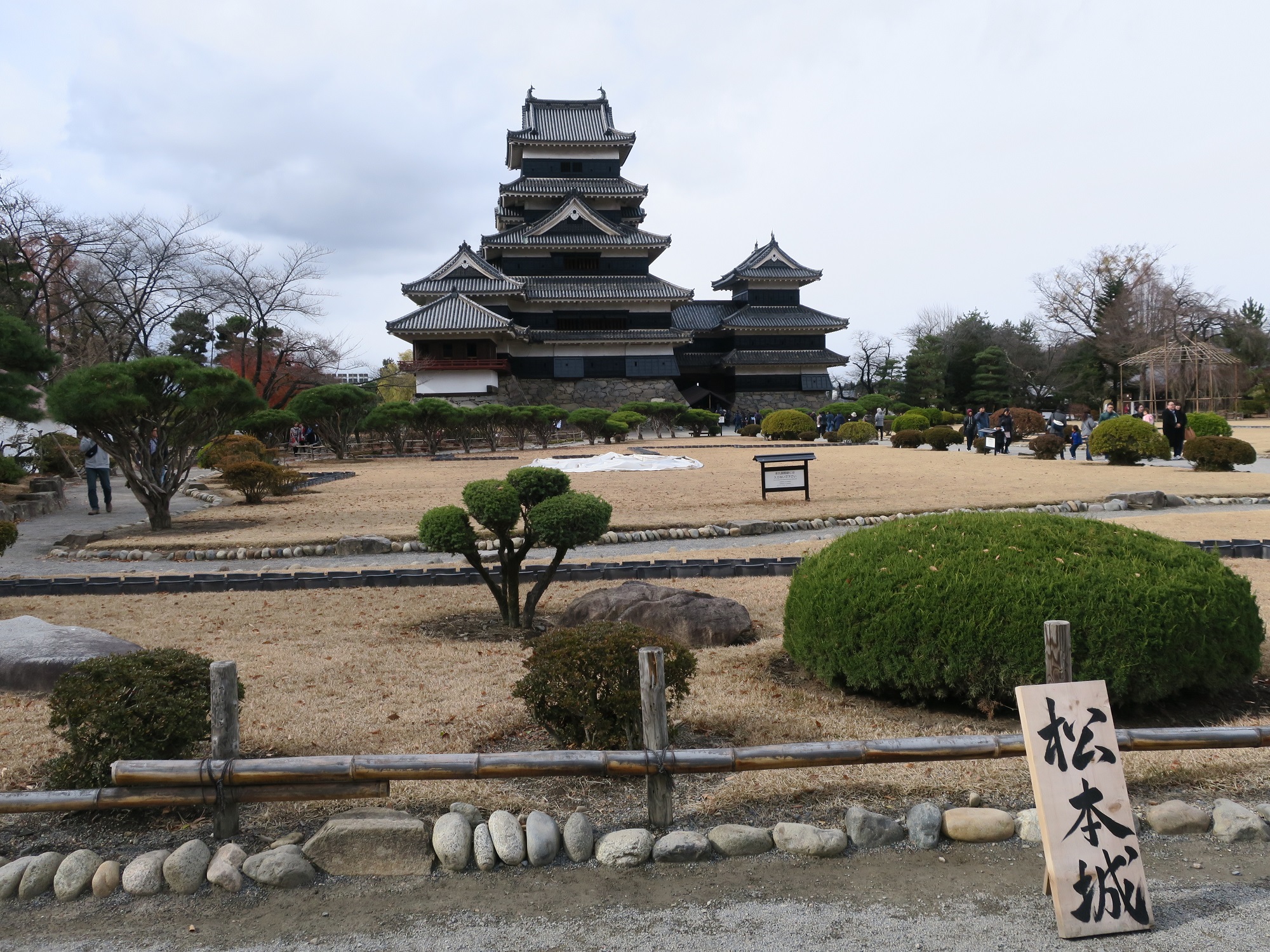 2日目。特急あずさに乗って、松本駅まで行きます。まずは、歩いて松本城に行きます。この後、松本城に登ってみたのですが、中は急階段の連続。しかも、寒かった。