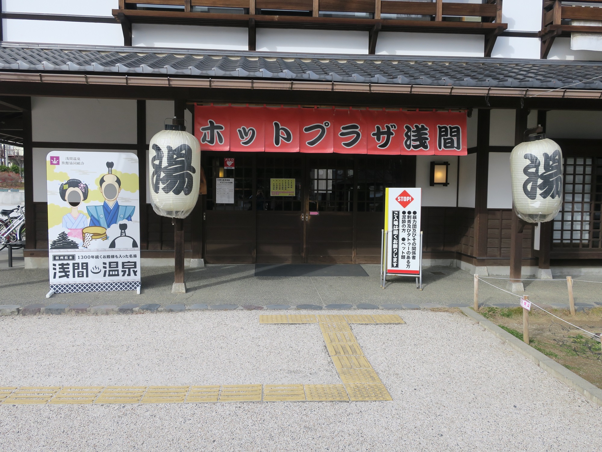 松本バスターミナルからバスで、浅間温泉へ行きます。浅間温泉会館の前に、バスが停まります。ここはホットプラザ浅間と言って、日帰り温泉施設になっているんですね。かなり立派な施設でしたよ。