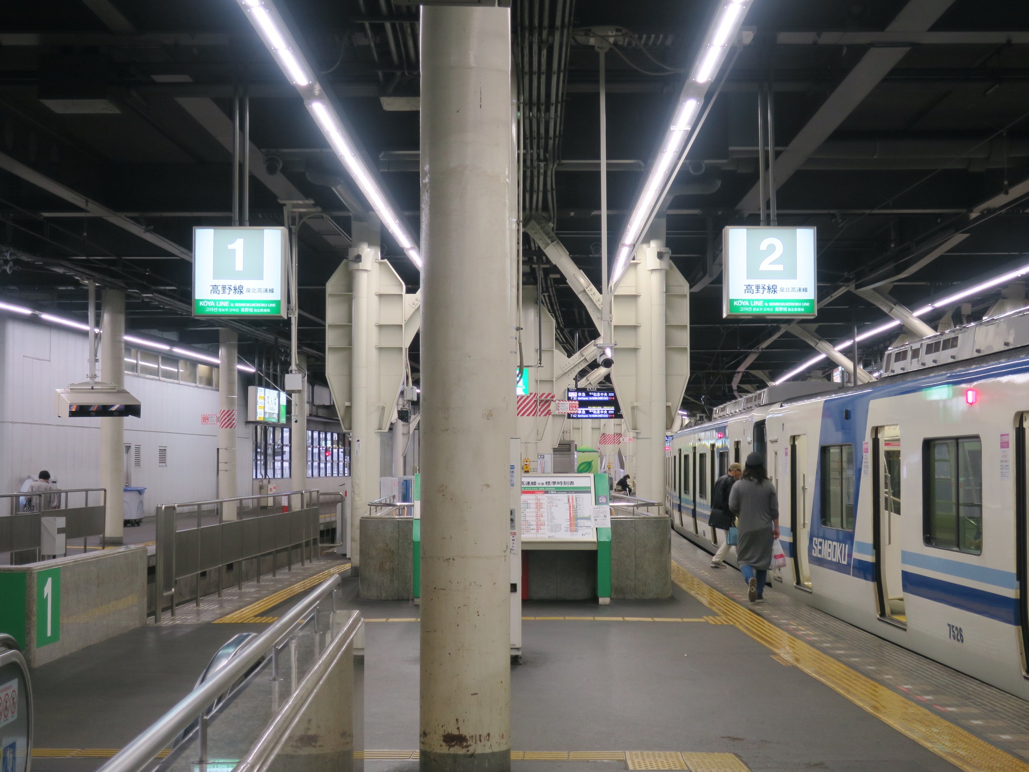 1番線~4番線が、南海高野線です。堺東・河内長野・橋本・極楽橋方面に行く列車と、泉北高速線で和泉中央方面に行く列車が発着します。写真は1番線・2番線です。