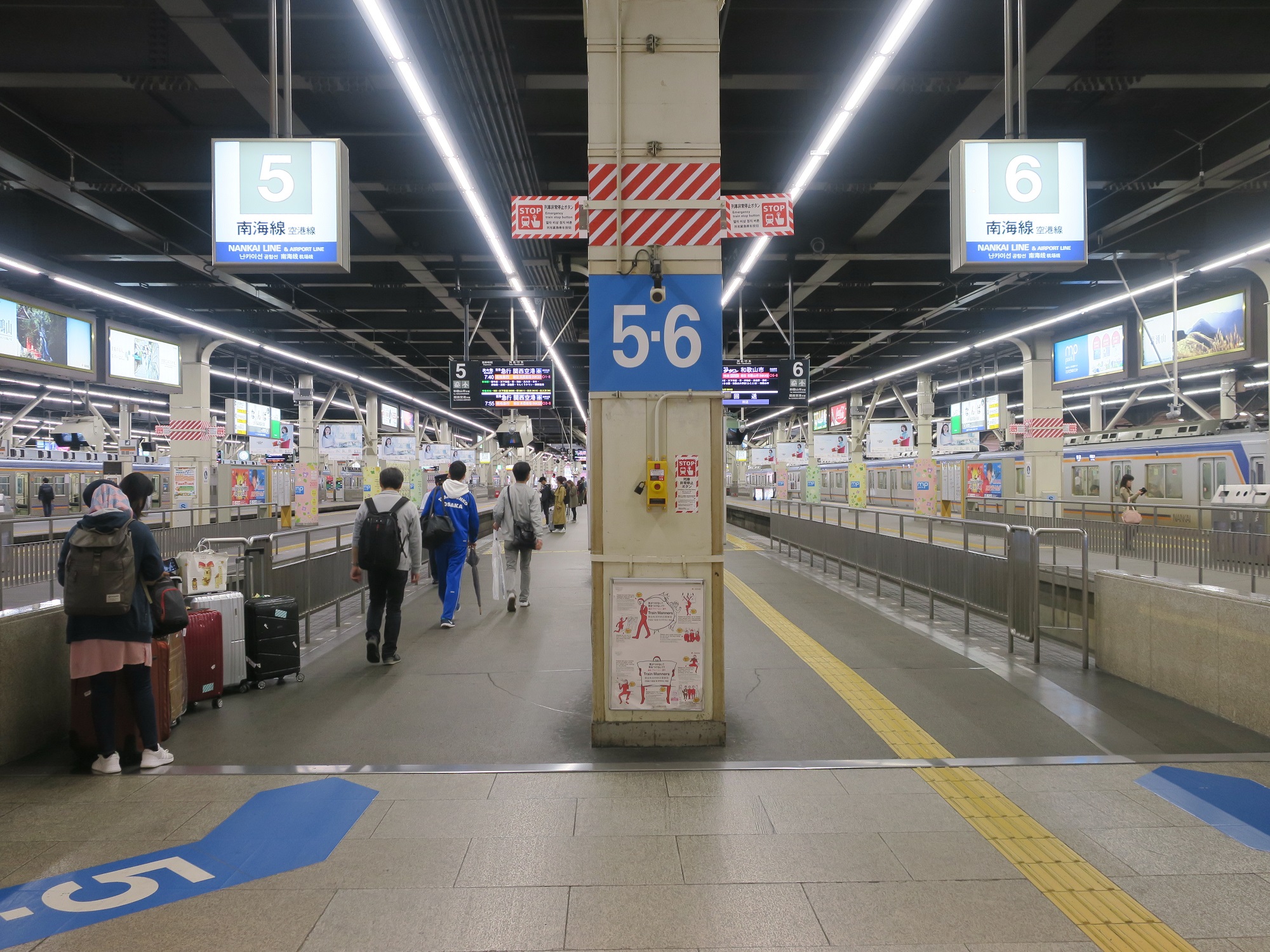5番線~9番線が南海本線です。堺・岸和田・泉佐野・和歌山市方面に行く列車と、空港線で関西空港方面に行く列車が発着します。写真は5番線・6番線です。